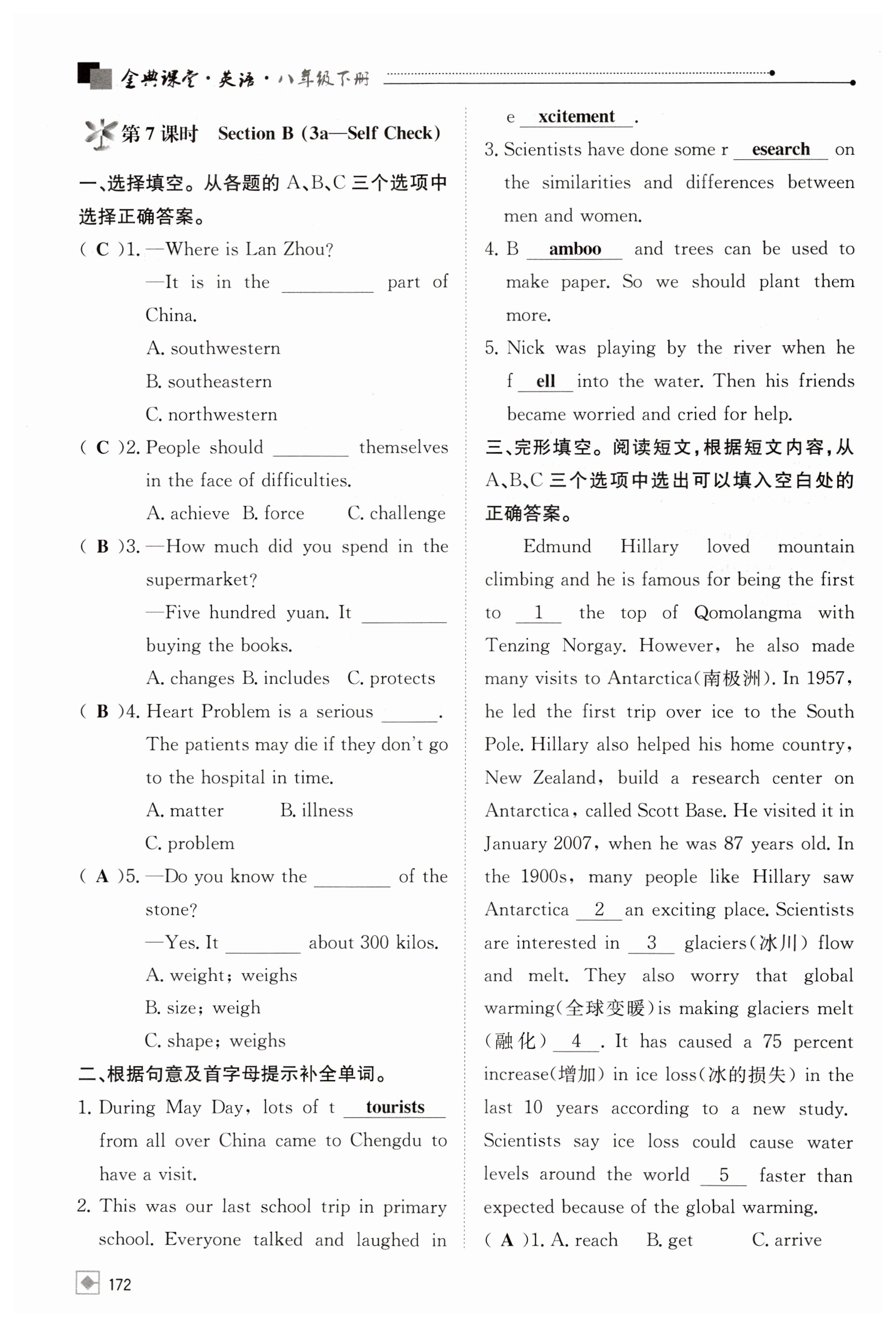 注:目前有些书本章节名称可能整理的还不是很完善,但都是按照顺序排列的,请同学们按照顺序仔细查找。练习册 2024年名校金典课堂八年级英语下册人教版成都专版 答案主要是用来给同学们做完题方便对答案用的,请勿直接抄袭。