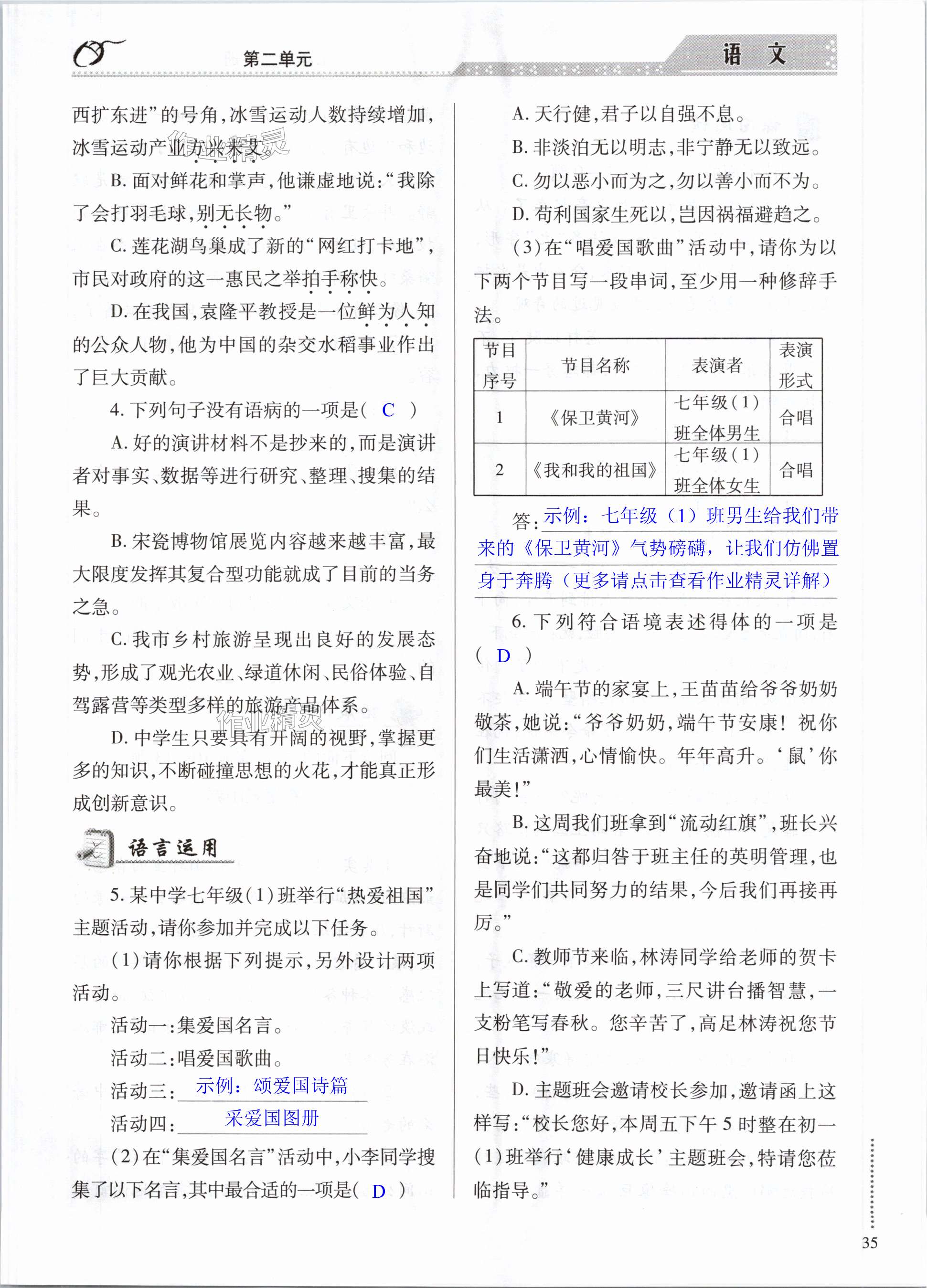 注:目前有些书本章节名称可能整理的还不是很完善,但都是按照顺序排列的,请同学们按照顺序仔细查找。练习册 2024年智慧学习导学练明天出版社七年级语文下册人教版 答案主要是用来给同学们做完题方便对答案用的,请勿直接抄袭。