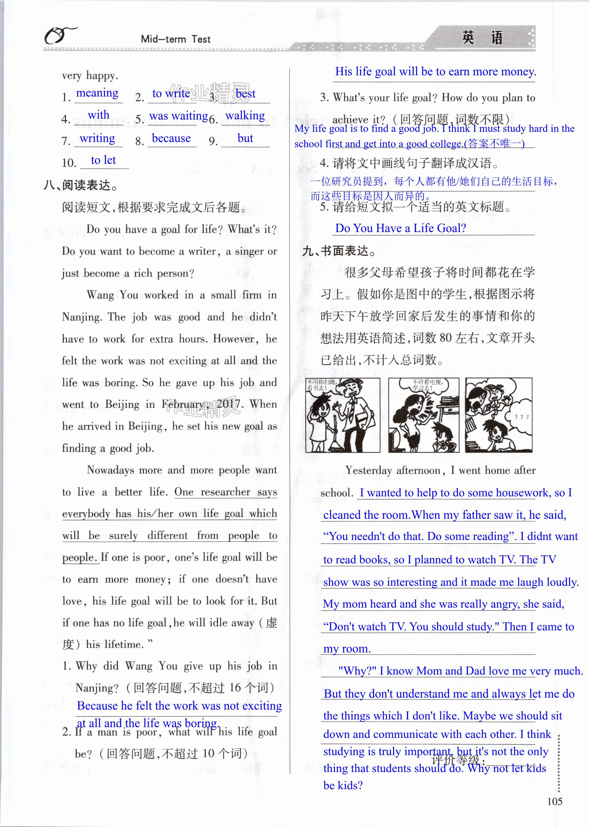 注:目前有些书本章节名称可能整理的还不是很完善,但都是按照顺序排列的,请同学们按照顺序仔细查找。练习册 2024年智慧学习导学练明天出版社八年级英语下册人教版 答案主要是用来给同学们做完题方便对答案用的,请勿直接抄袭。