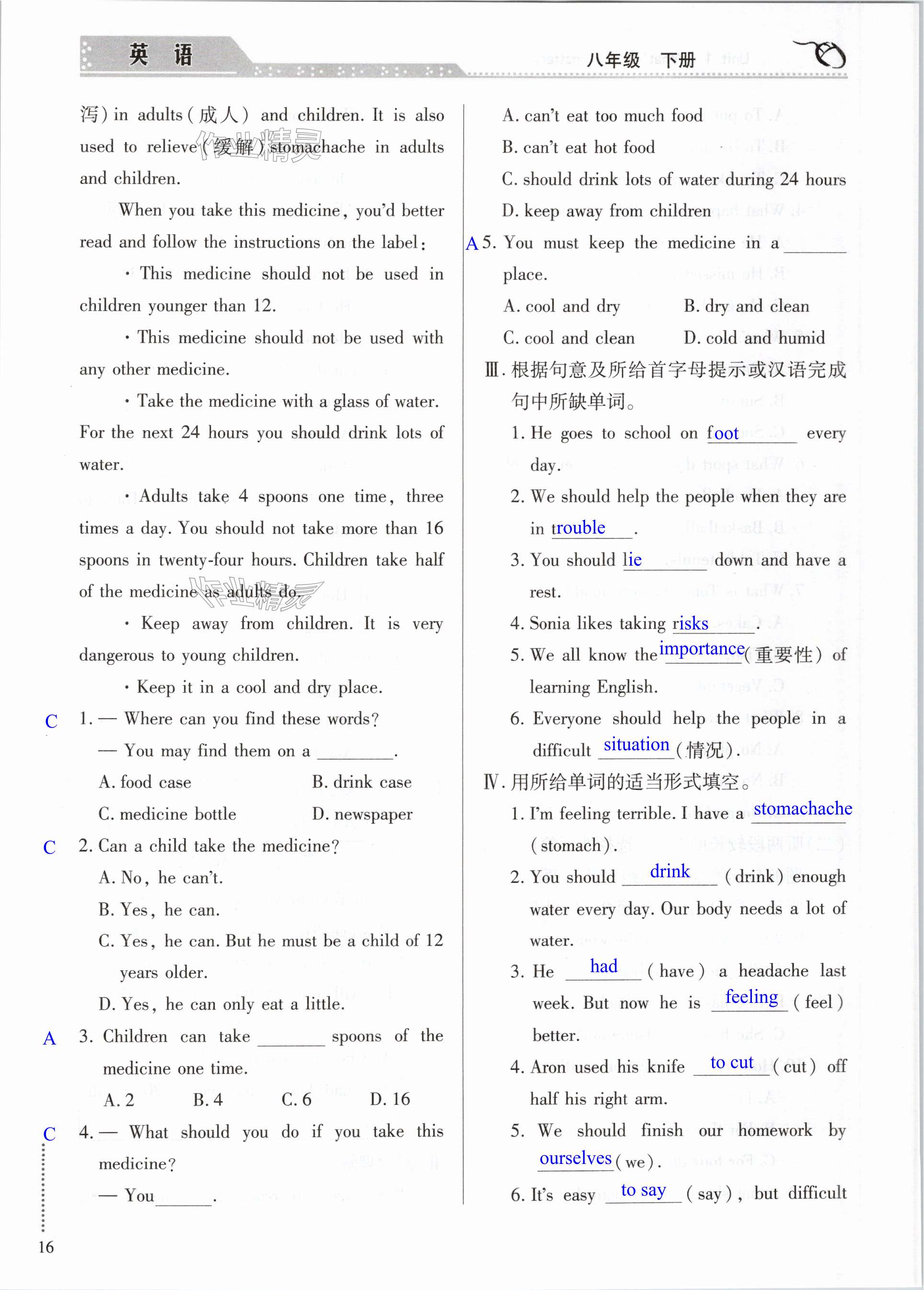 注:目前有些书本章节名称可能整理的还不是很完善,但都是按照顺序排列的,请同学们按照顺序仔细查找。练习册 2024年智慧学习导学练明天出版社八年级英语下册人教版 答案主要是用来给同学们做完题方便对答案用的,请勿直接抄袭。