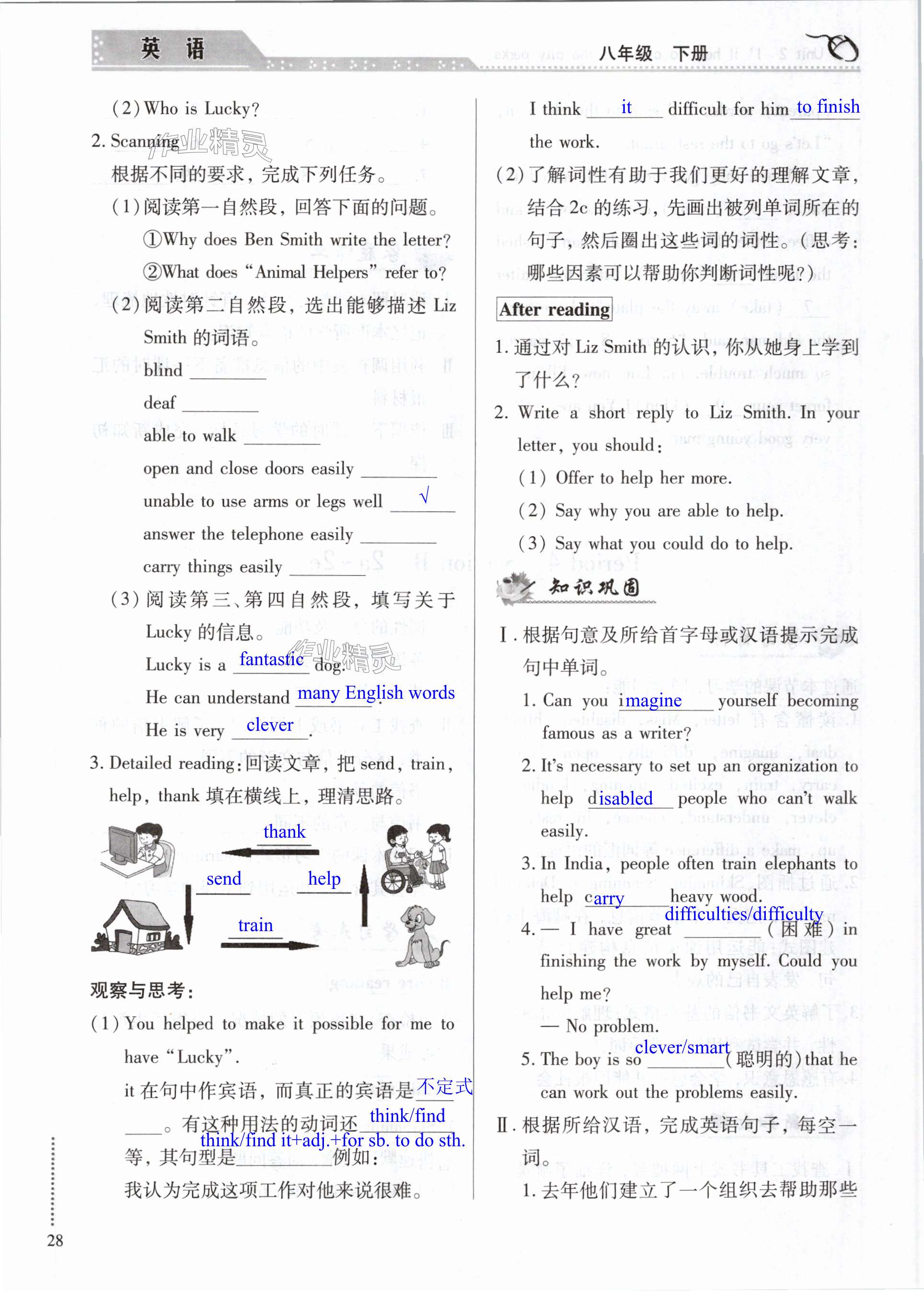 注:目前有些书本章节名称可能整理的还不是很完善,但都是按照顺序排列的,请同学们按照顺序仔细查找。练习册 2024年智慧学习导学练明天出版社八年级英语下册人教版 答案主要是用来给同学们做完题方便对答案用的,请勿直接抄袭。
