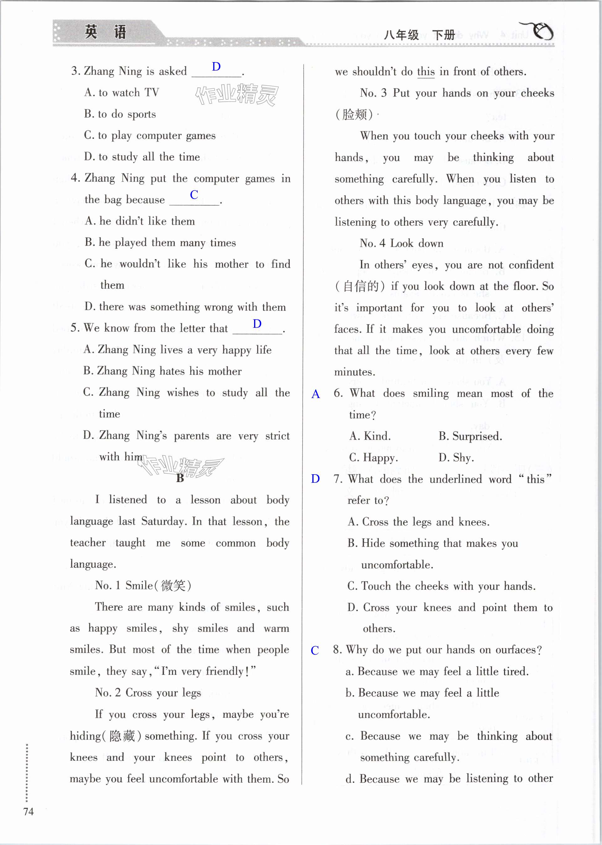 注:目前有些书本章节名称可能整理的还不是很完善,但都是按照顺序排列的,请同学们按照顺序仔细查找。练习册 2024年智慧学习导学练明天出版社八年级英语下册人教版 答案主要是用来给同学们做完题方便对答案用的,请勿直接抄袭。
