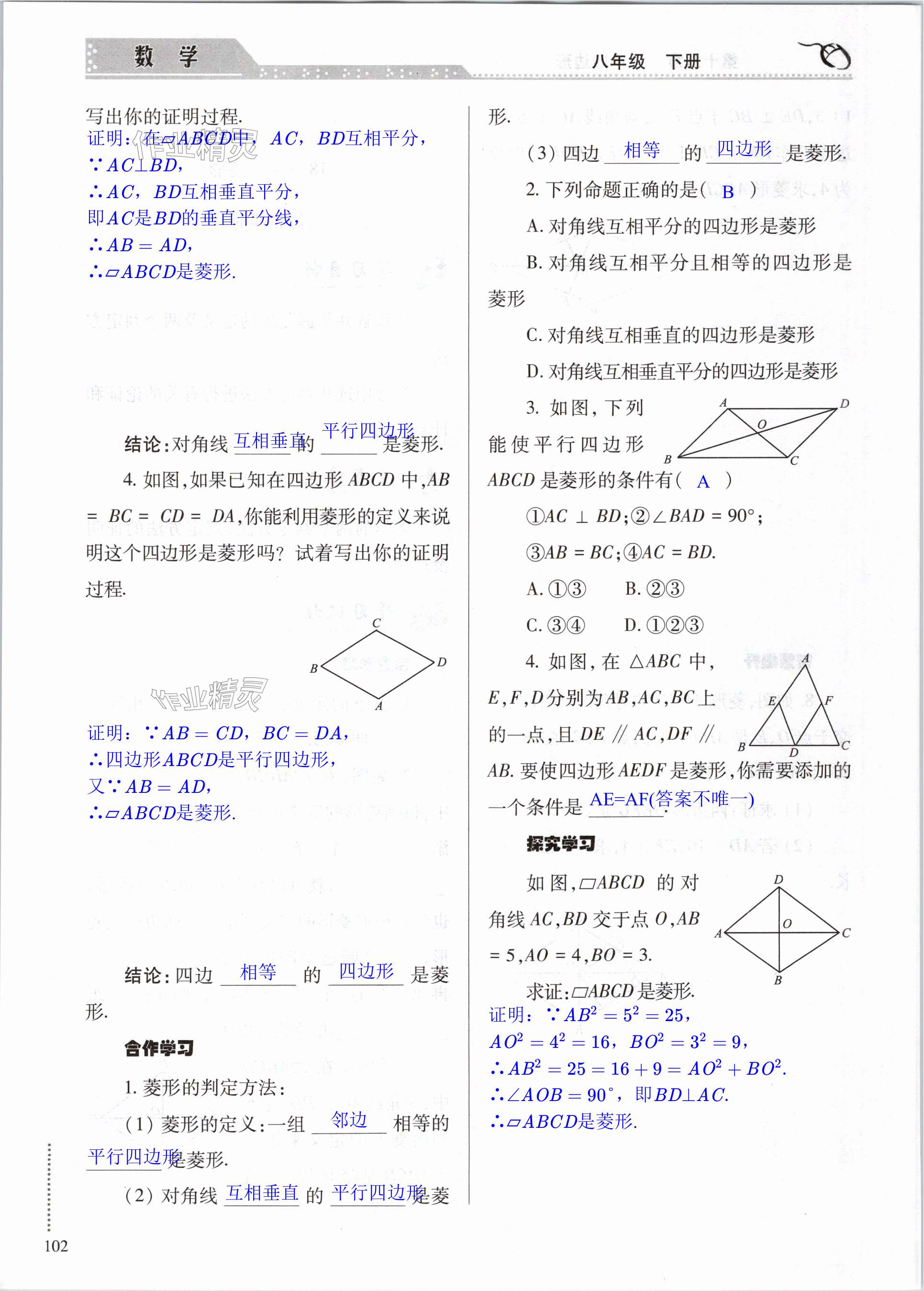 注:目前有些书本章节名称可能整理的还不是很完善,但都是按照顺序排列的,请同学们按照顺序仔细查找。练习册 2024年智慧学习导学练明天出版社八年级数学下册人教版 答案主要是用来给同学们做完题方便对答案用的,请勿直接抄袭。