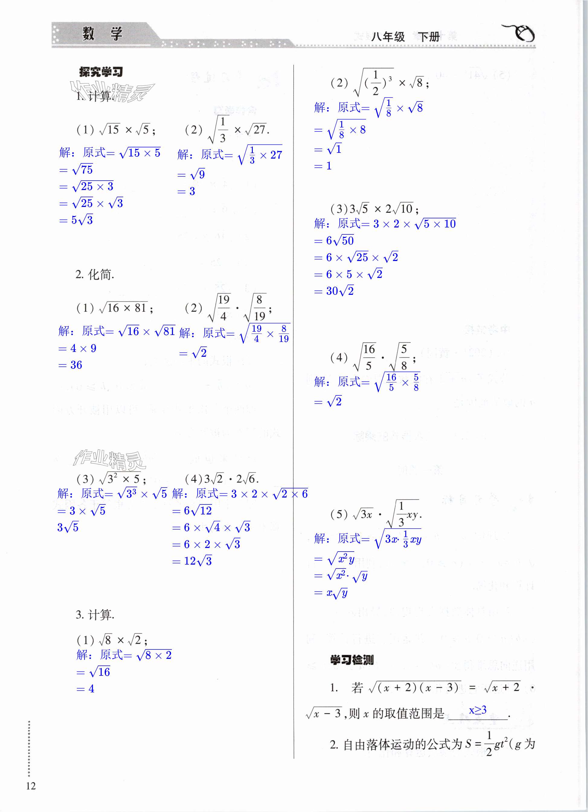 2024年智慧学习导学练明天出版社八年级数学下册人教版