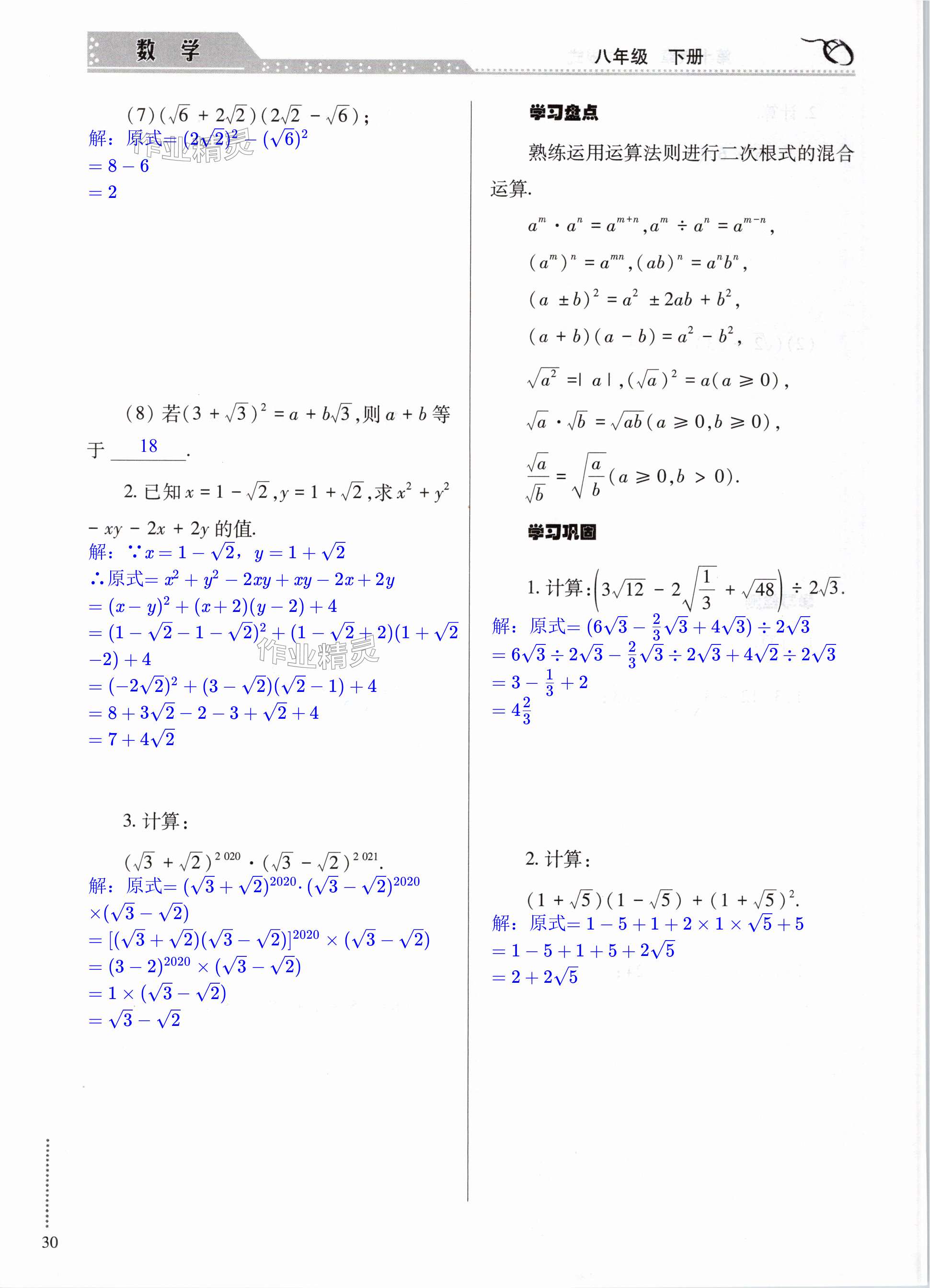 2024年智慧学习导学练明天出版社八年级数学下册人教版
