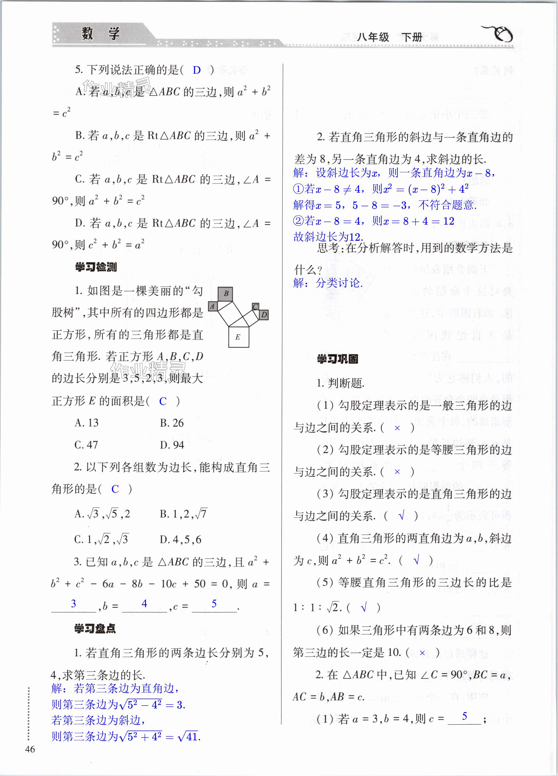 注:目前有些书本章节名称可能整理的还不是很完善,但都是按照顺序排列的,请同学们按照顺序仔细查找。练习册 2024年智慧学习导学练明天出版社八年级数学下册人教版 答案主要是用来给同学们做完题方便对答案用的,请勿直接抄袭。