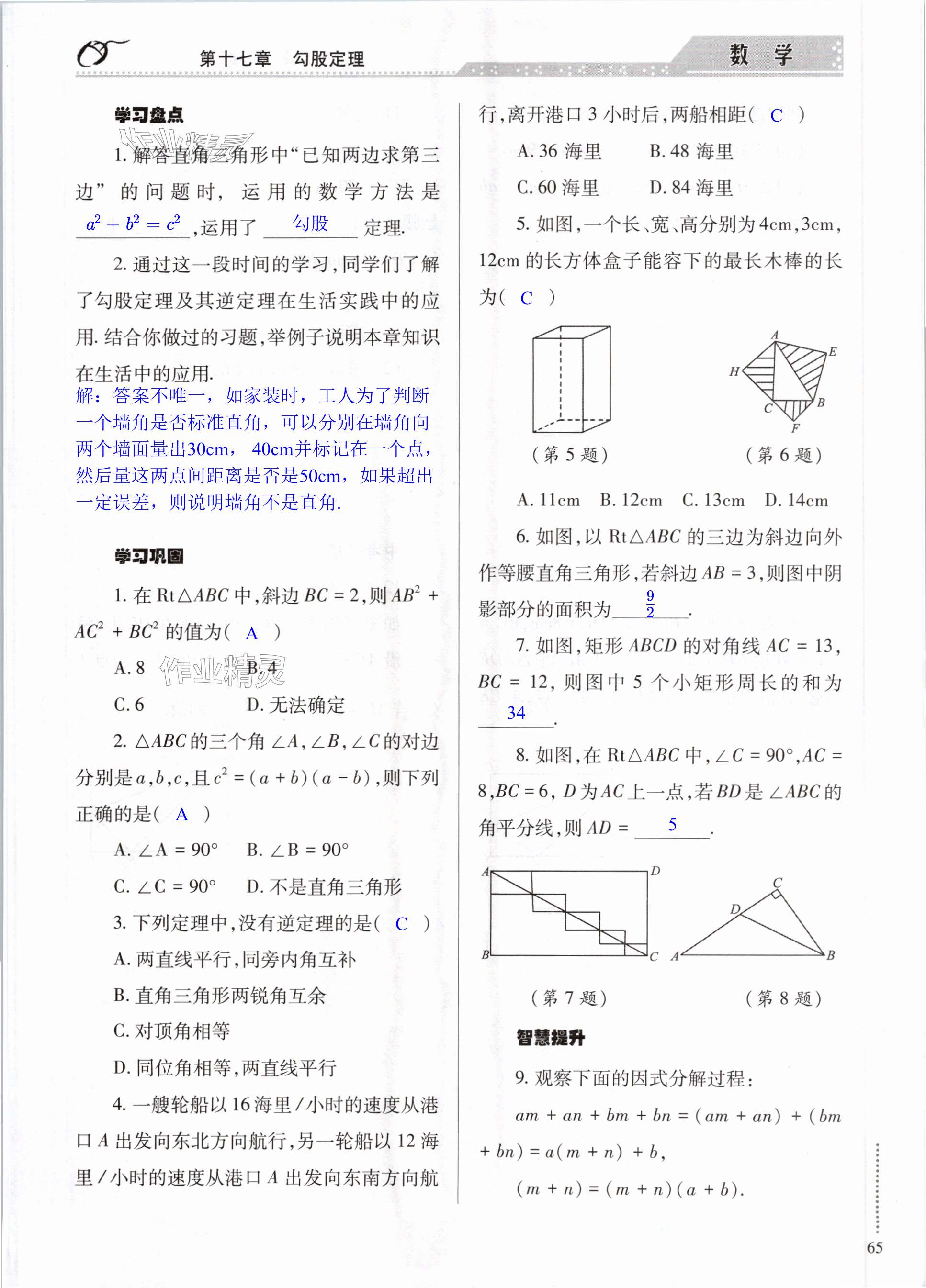 注:目前有些书本章节名称可能整理的还不是很完善,但都是按照顺序排列的,请同学们按照顺序仔细查找。练习册 2024年智慧学习导学练明天出版社八年级数学下册人教版 答案主要是用来给同学们做完题方便对答案用的,请勿直接抄袭。