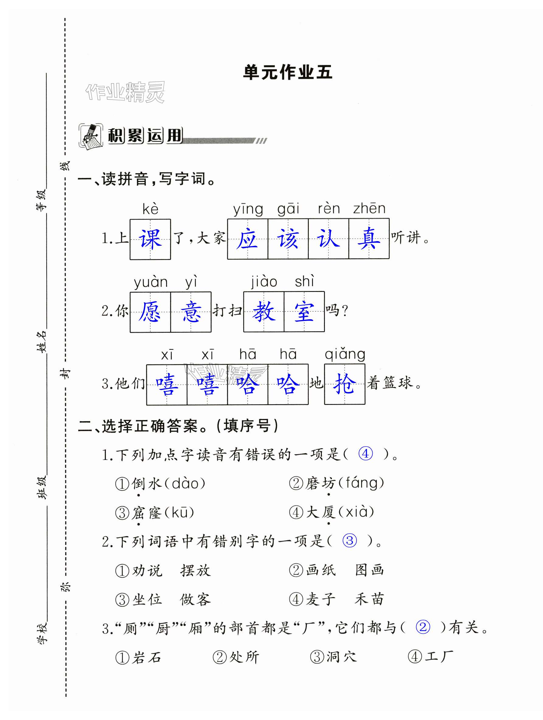 注:目前有些书本章节名称可能整理的还不是很完善,但都是按照顺序排列的,请同学们按照顺序仔细查找。练习册 2024年新课堂同步学习与探究二年级语文下册人教版枣庄专版 答案主要是用来给同学们做完题方便对答案用的,请勿直接抄袭。