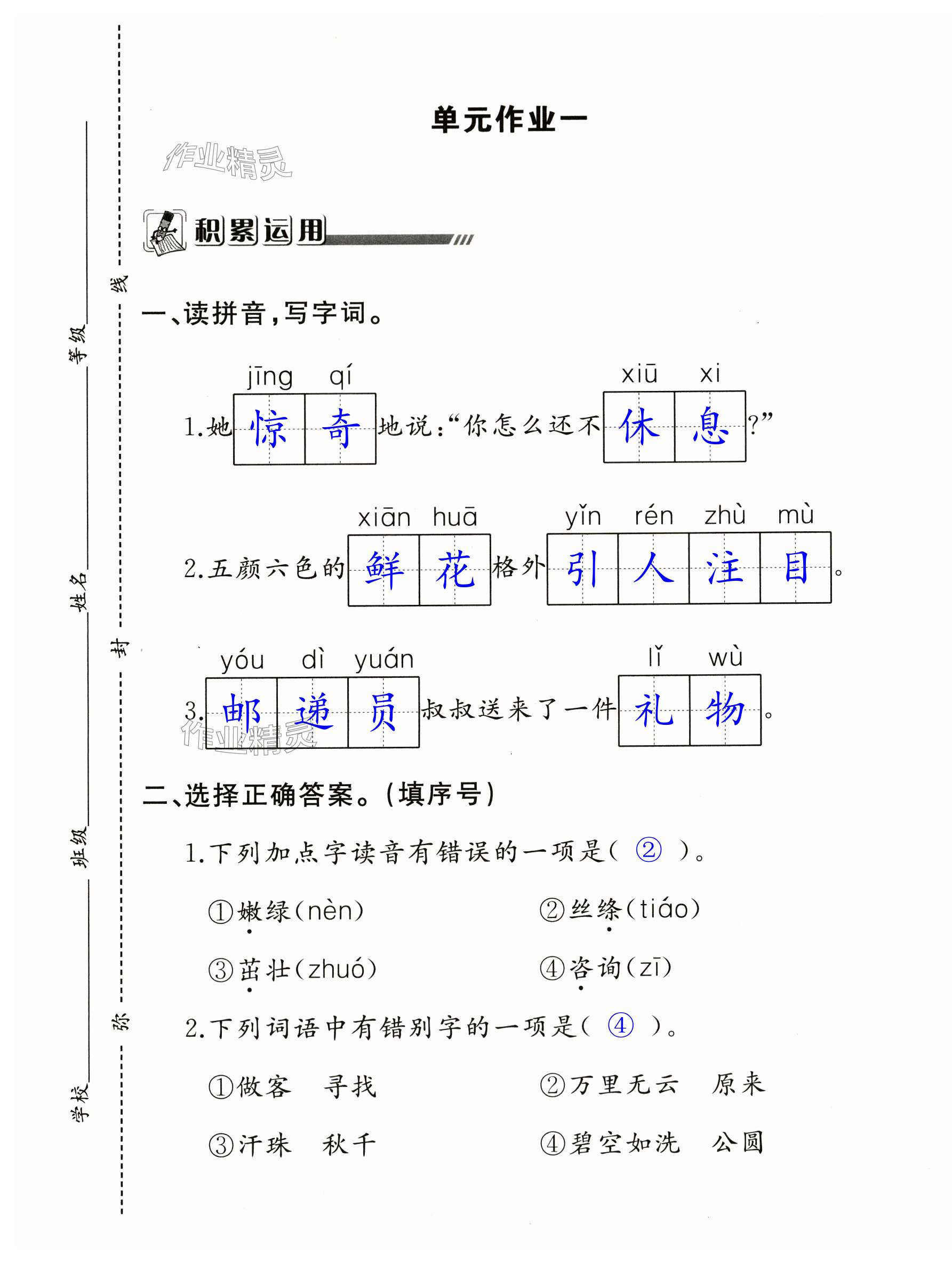 注:目前有些书本章节名称可能整理的还不是很完善,但都是按照顺序排列的,请同学们按照顺序仔细查找。练习册 2024年新课堂同步学习与探究二年级语文下册人教版枣庄专版 答案主要是用来给同学们做完题方便对答案用的,请勿直接抄袭。