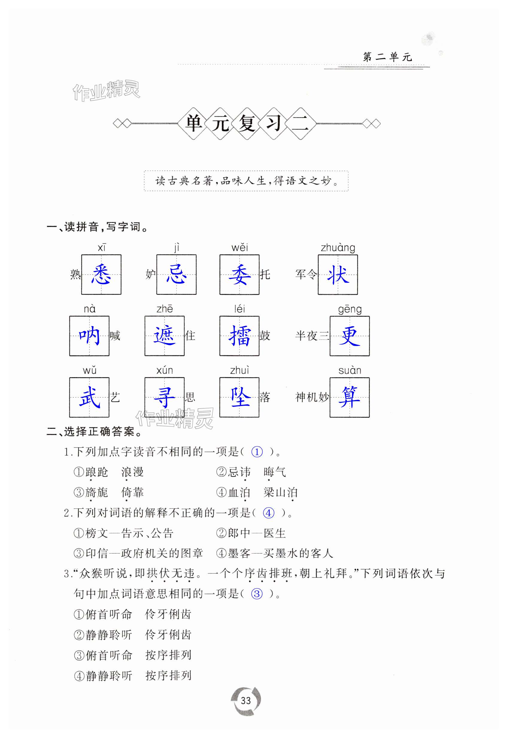 注:目前有些书本章节名称可能整理的还不是很完善,但都是按照顺序排列的,请同学们按照顺序仔细查找。练习册 2024年新课堂同步学习与探究五年级语文下册人教版枣庄专版 答案主要是用来给同学们做完题方便对答案用的,请勿直接抄袭。