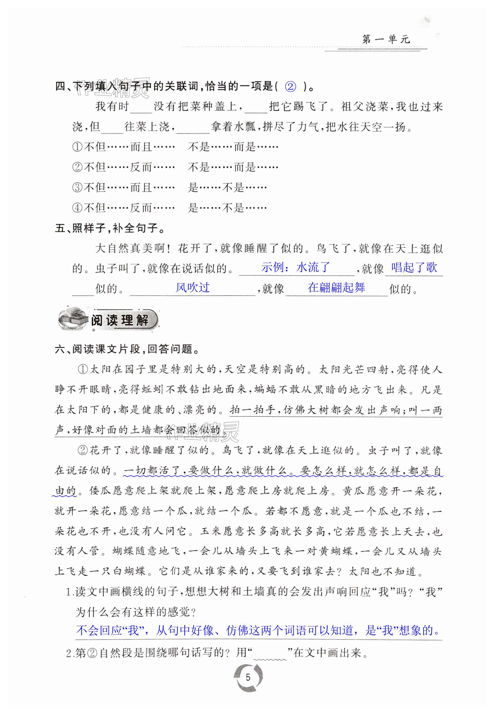 注:目前有些书本章节名称可能整理的还不是很完善,但都是按照顺序排列的,请同学们按照顺序仔细查找。练习册 2024年新课堂同步学习与探究五年级语文下册人教版枣庄专版 答案主要是用来给同学们做完题方便对答案用的,请勿直接抄袭。