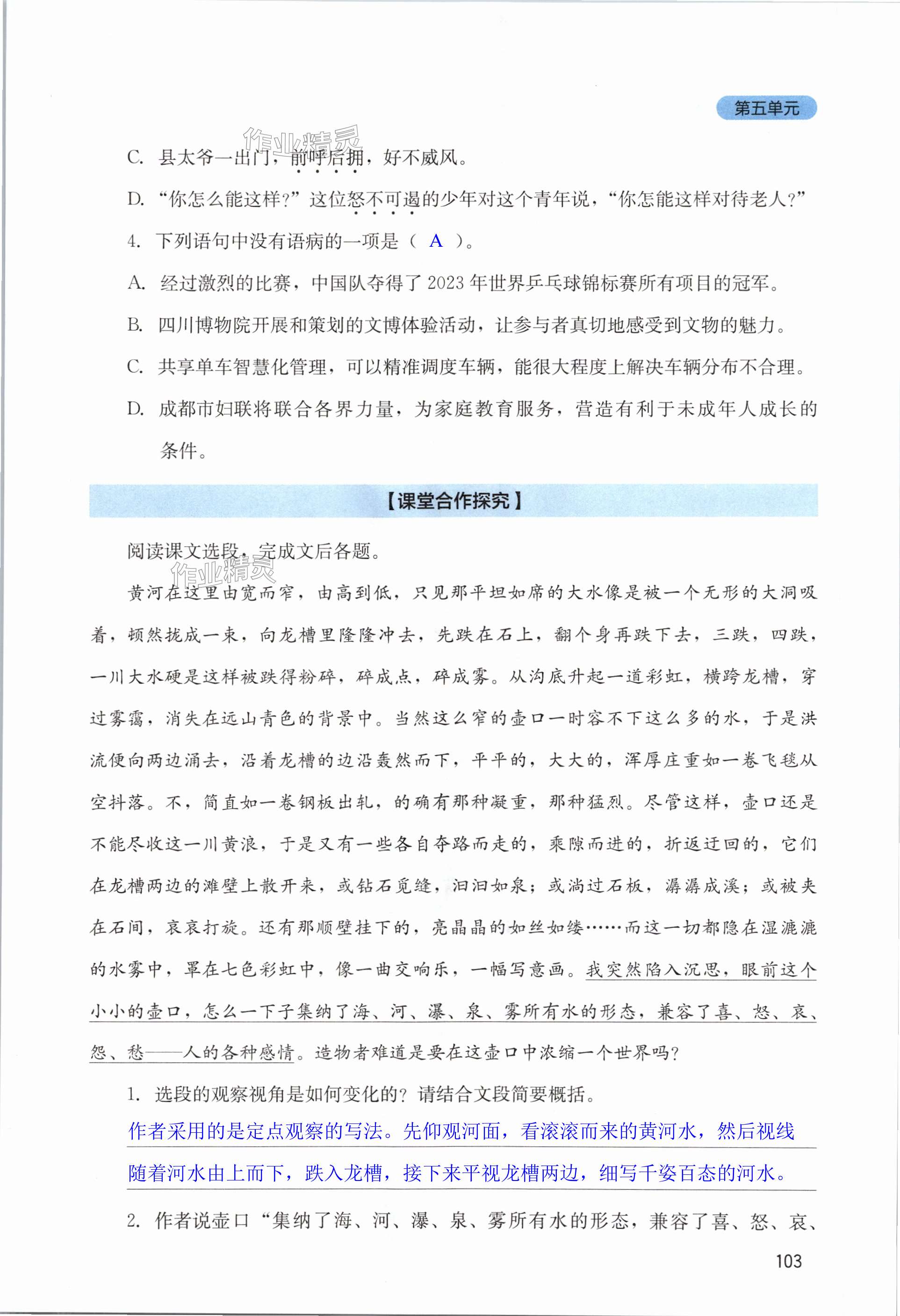 注:目前有些书本章节名称可能整理的还不是很完善,但都是按照顺序排列的,请同学们按照顺序仔细查找。练习册 2024年新课程实践与探究丛书八年级语文下册人教版 答案主要是用来给同学们做完题方便对答案用的,请勿直接抄袭。