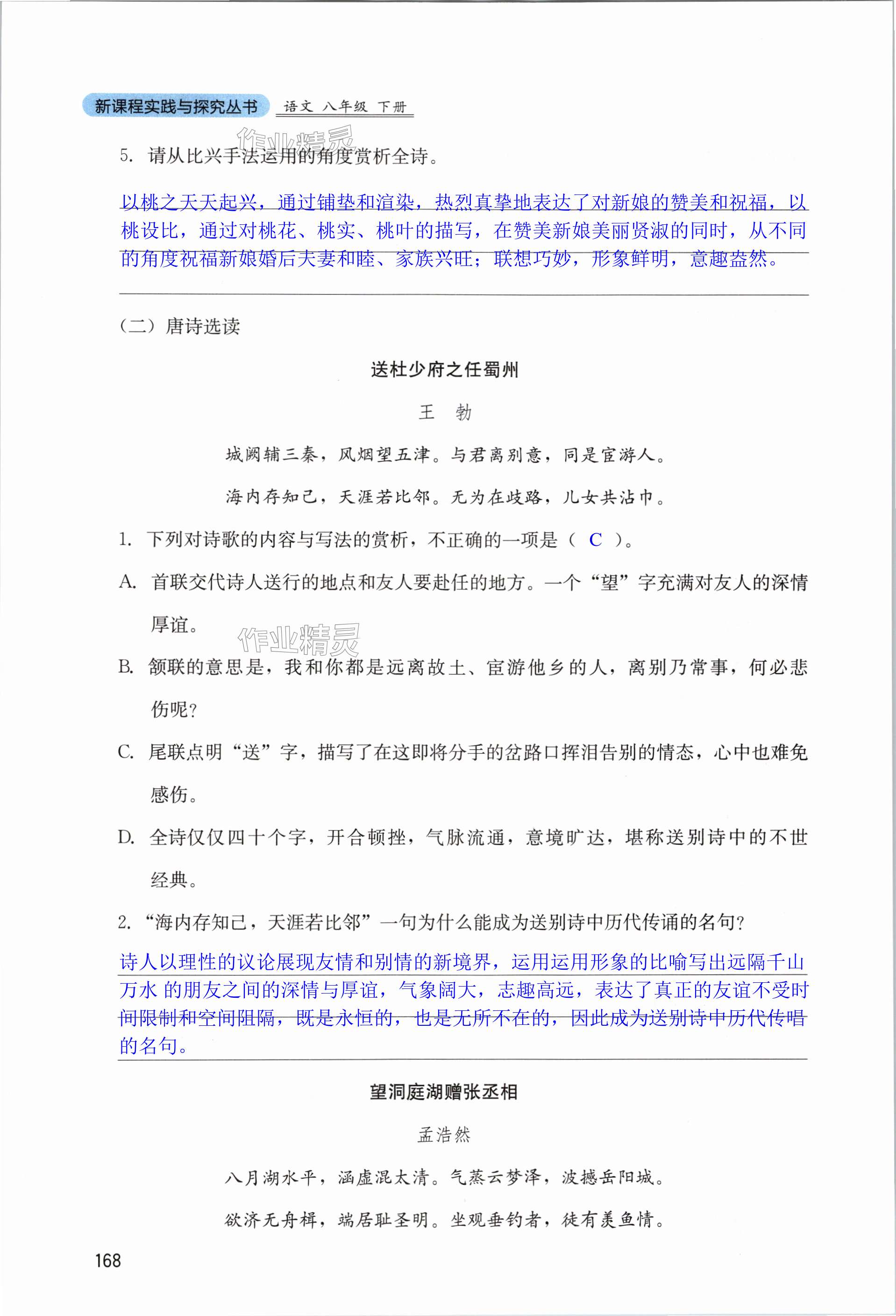 注:目前有些书本章节名称可能整理的还不是很完善,但都是按照顺序排列的,请同学们按照顺序仔细查找。练习册 2024年新课程实践与探究丛书八年级语文下册人教版 答案主要是用来给同学们做完题方便对答案用的,请勿直接抄袭。