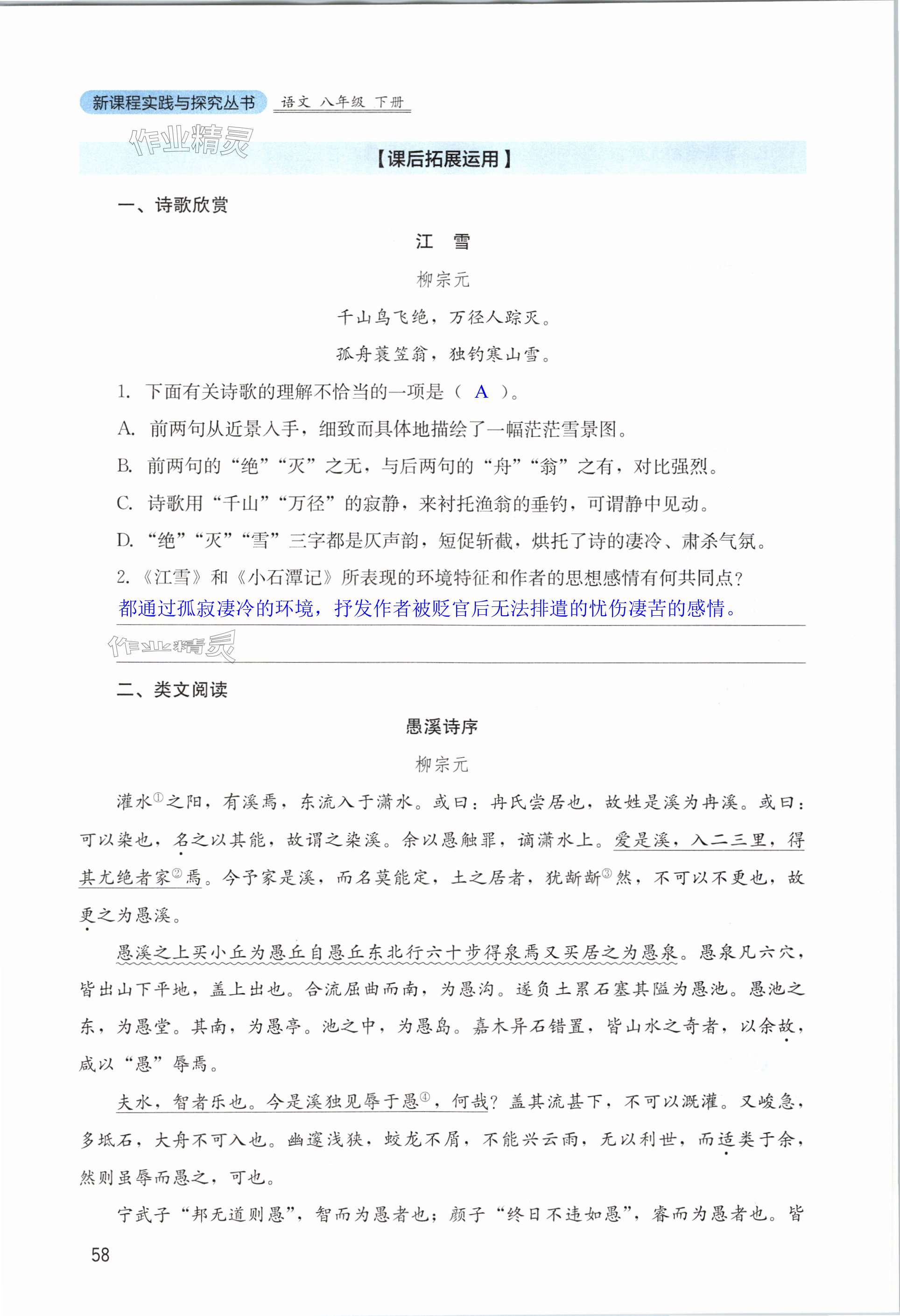 注:目前有些书本章节名称可能整理的还不是很完善,但都是按照顺序排列的,请同学们按照顺序仔细查找。练习册 2024年新课程实践与探究丛书八年级语文下册人教版 答案主要是用来给同学们做完题方便对答案用的,请勿直接抄袭。