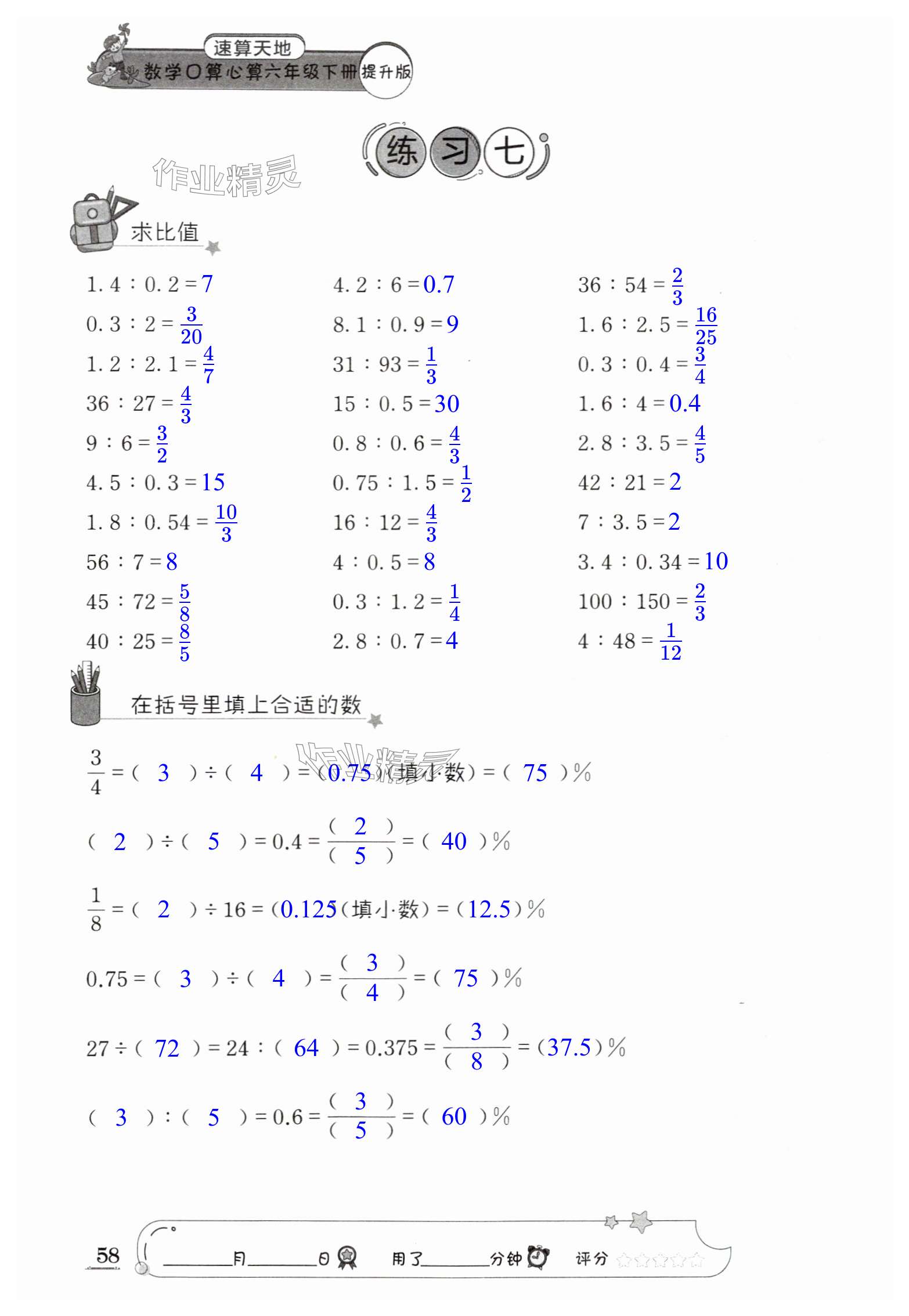 2024年速算天地数学口算心算六年级下册苏教版提升版