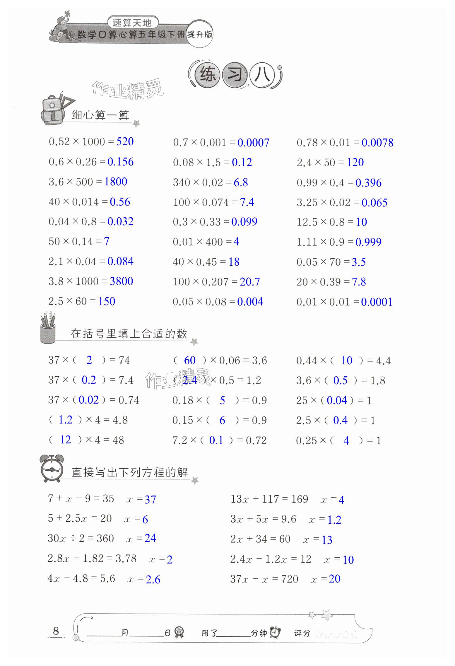 《2024年速算天地数学口算心算五年级下册苏教版提升版》