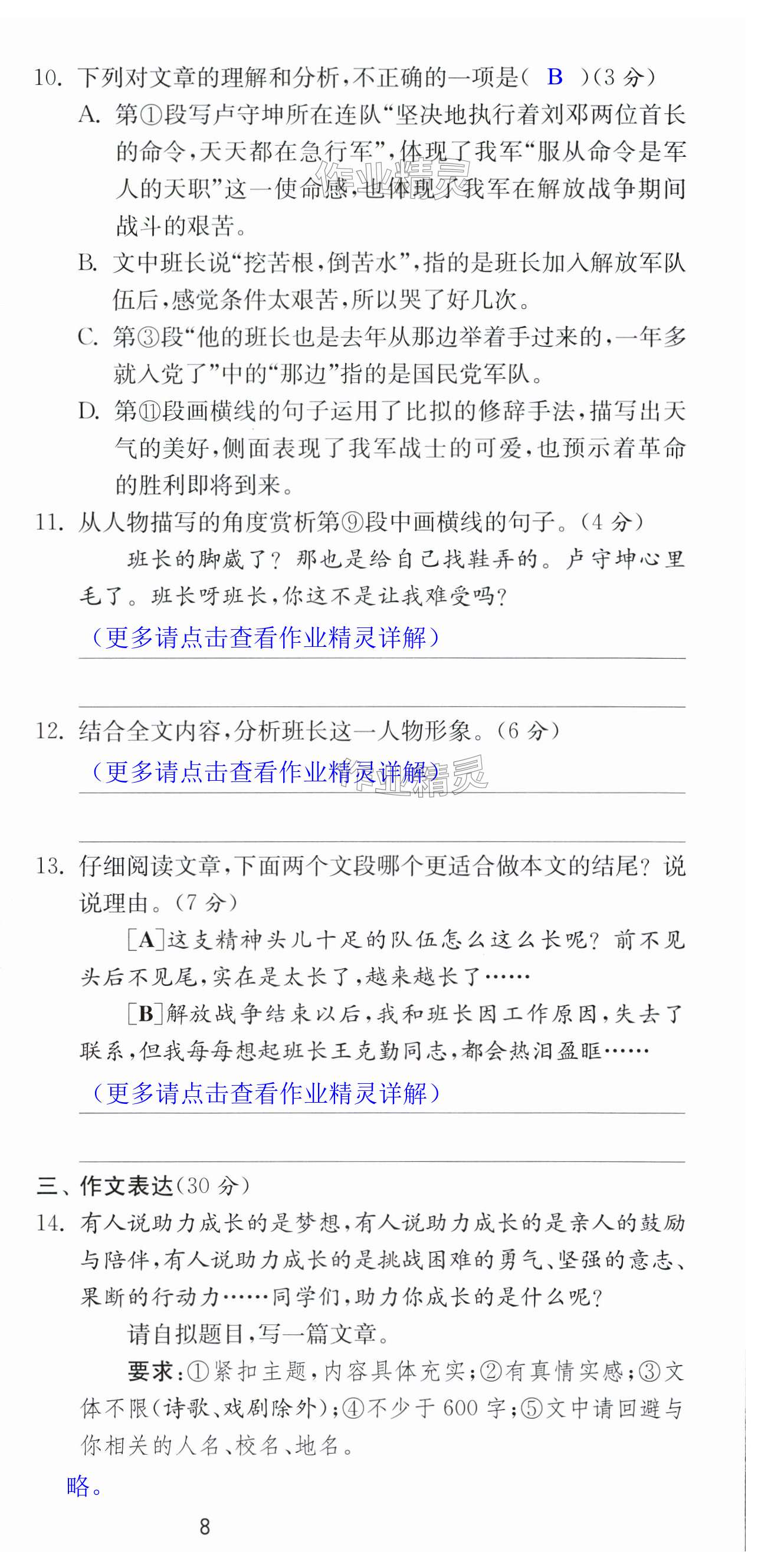 注:目前有些书本章节名称可能整理的还不是很完善,但都是按照顺序排列的,请同学们按照顺序仔细查找。练习册 2024年课时训练七年级语文下册人教版江苏人民出版社 答案主要是用来给同学们做完题方便对答案用的,请勿直接抄袭。