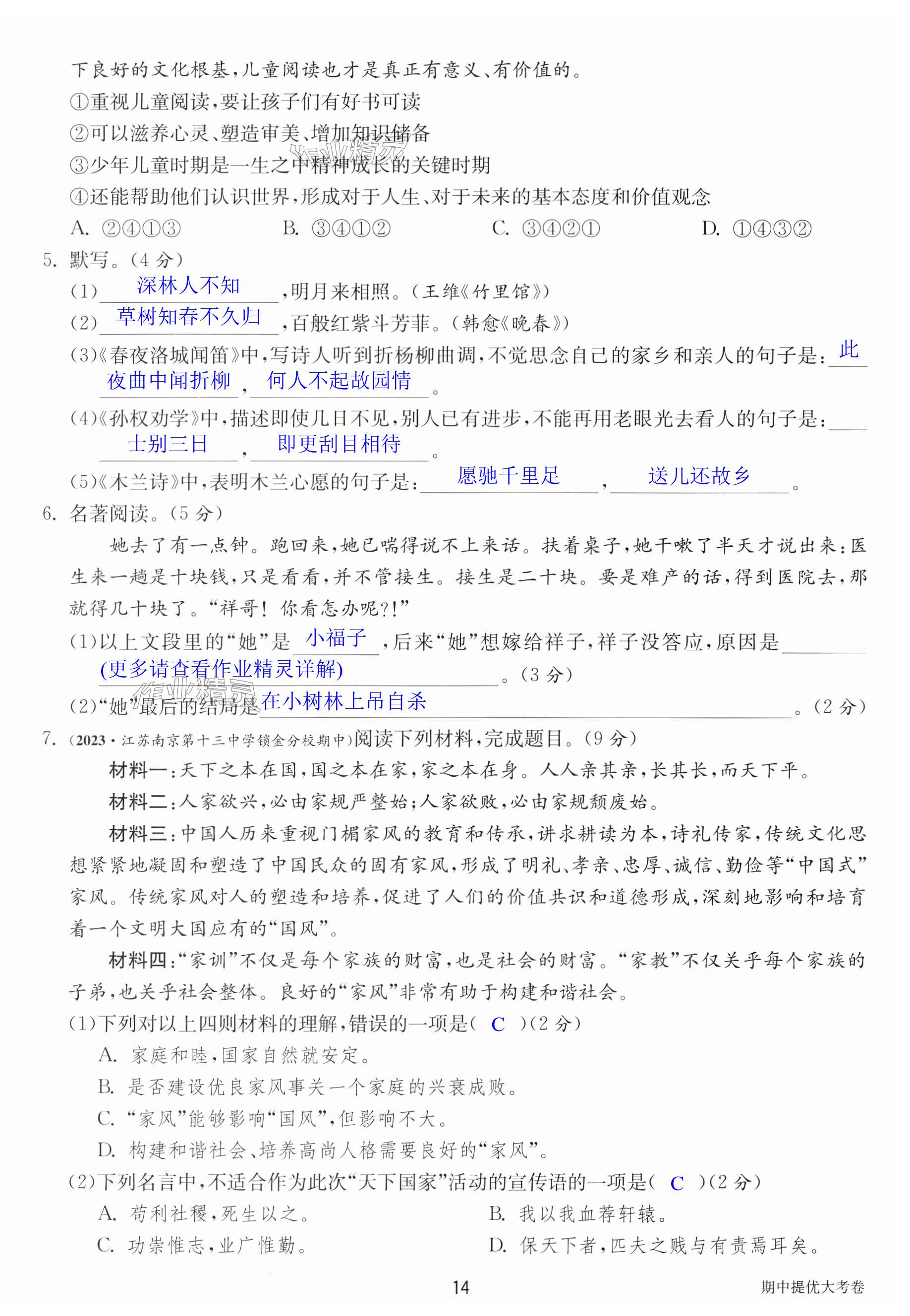 注:目前有些书本章节名称可能整理的还不是很完善,但都是按照顺序排列的,请同学们按照顺序仔细查找。练习册 2024年课时训练七年级语文下册人教版江苏人民出版社 答案主要是用来给同学们做完题方便对答案用的,请勿直接抄袭。
