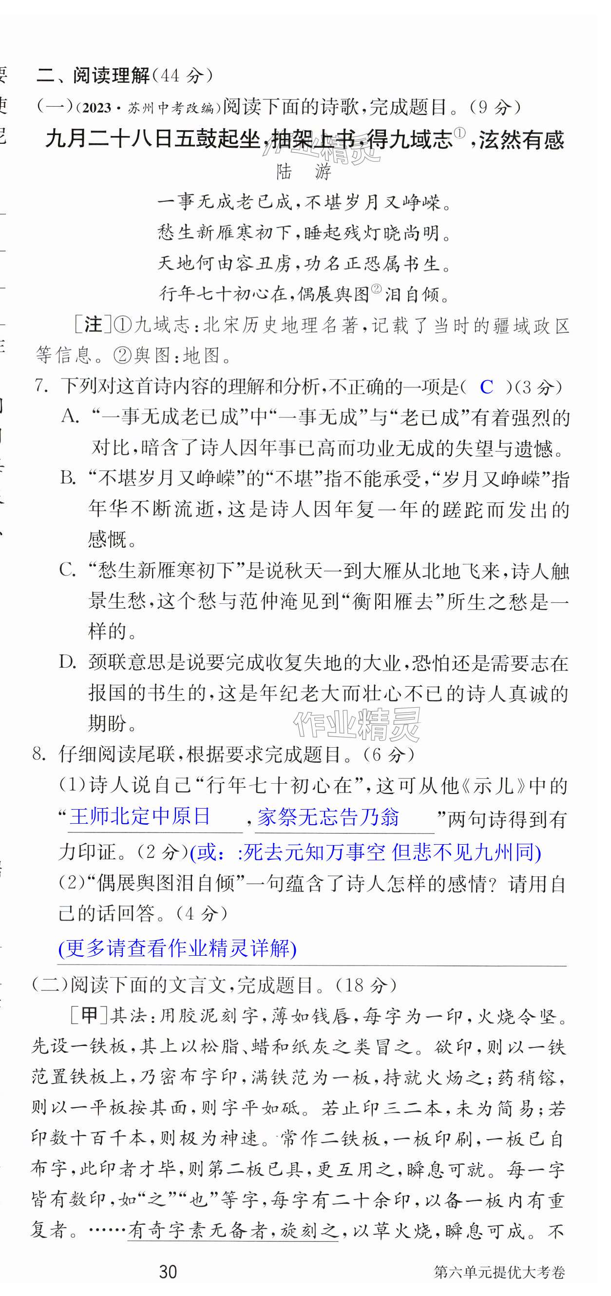 注:目前有些书本章节名称可能整理的还不是很完善,但都是按照顺序排列的,请同学们按照顺序仔细查找。练习册 2024年课时训练七年级语文下册人教版江苏人民出版社 答案主要是用来给同学们做完题方便对答案用的,请勿直接抄袭。