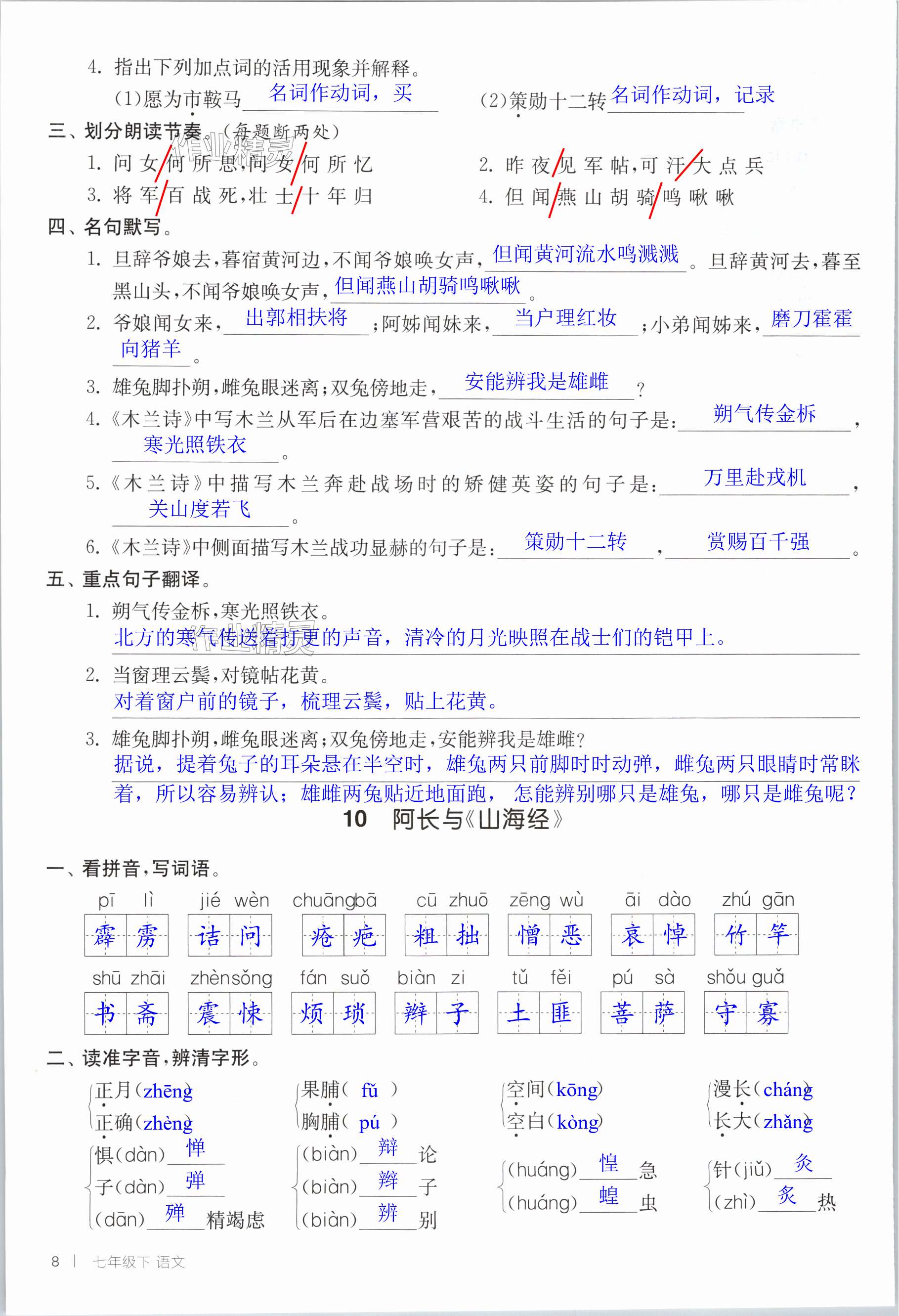 注:目前有些书本章节名称可能整理的还不是很完善,但都是按照顺序排列的,请同学们按照顺序仔细查找。练习册 2024年课时训练七年级语文下册人教版江苏人民出版社 答案主要是用来给同学们做完题方便对答案用的,请勿直接抄袭。