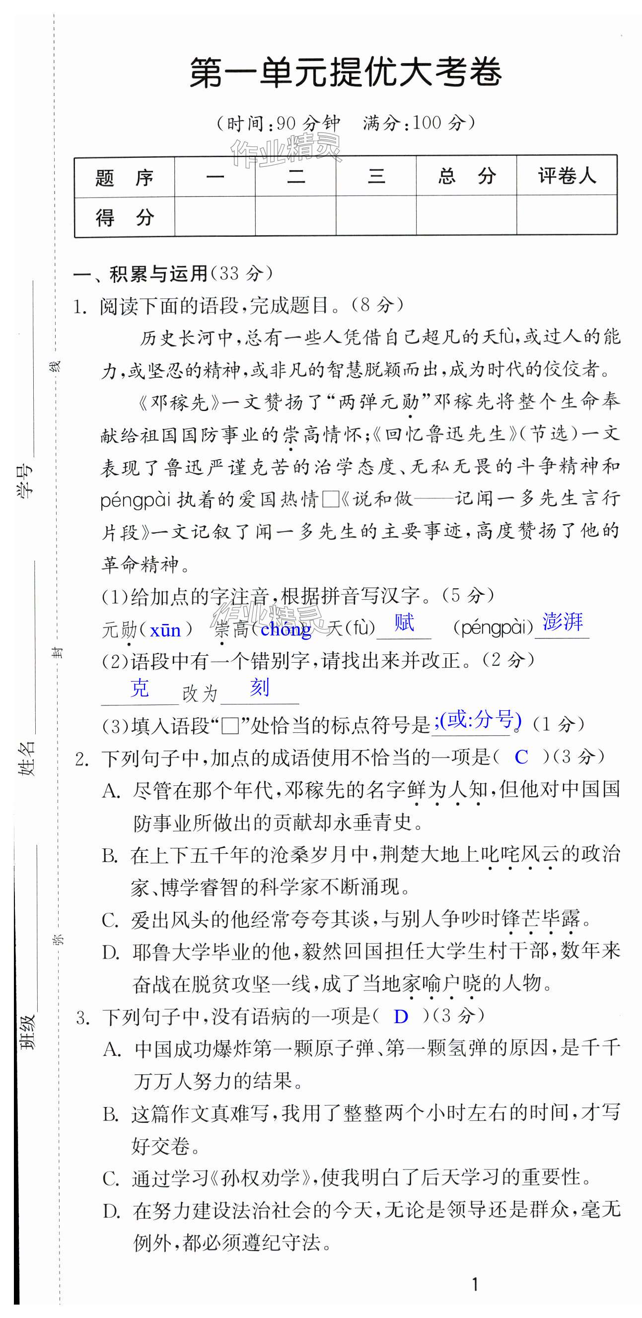 注:目前有些书本章节名称可能整理的还不是很完善,但都是按照顺序排列的,请同学们按照顺序仔细查找。练习册 2024年课时训练七年级语文下册人教版江苏人民出版社 答案主要是用来给同学们做完题方便对答案用的,请勿直接抄袭。