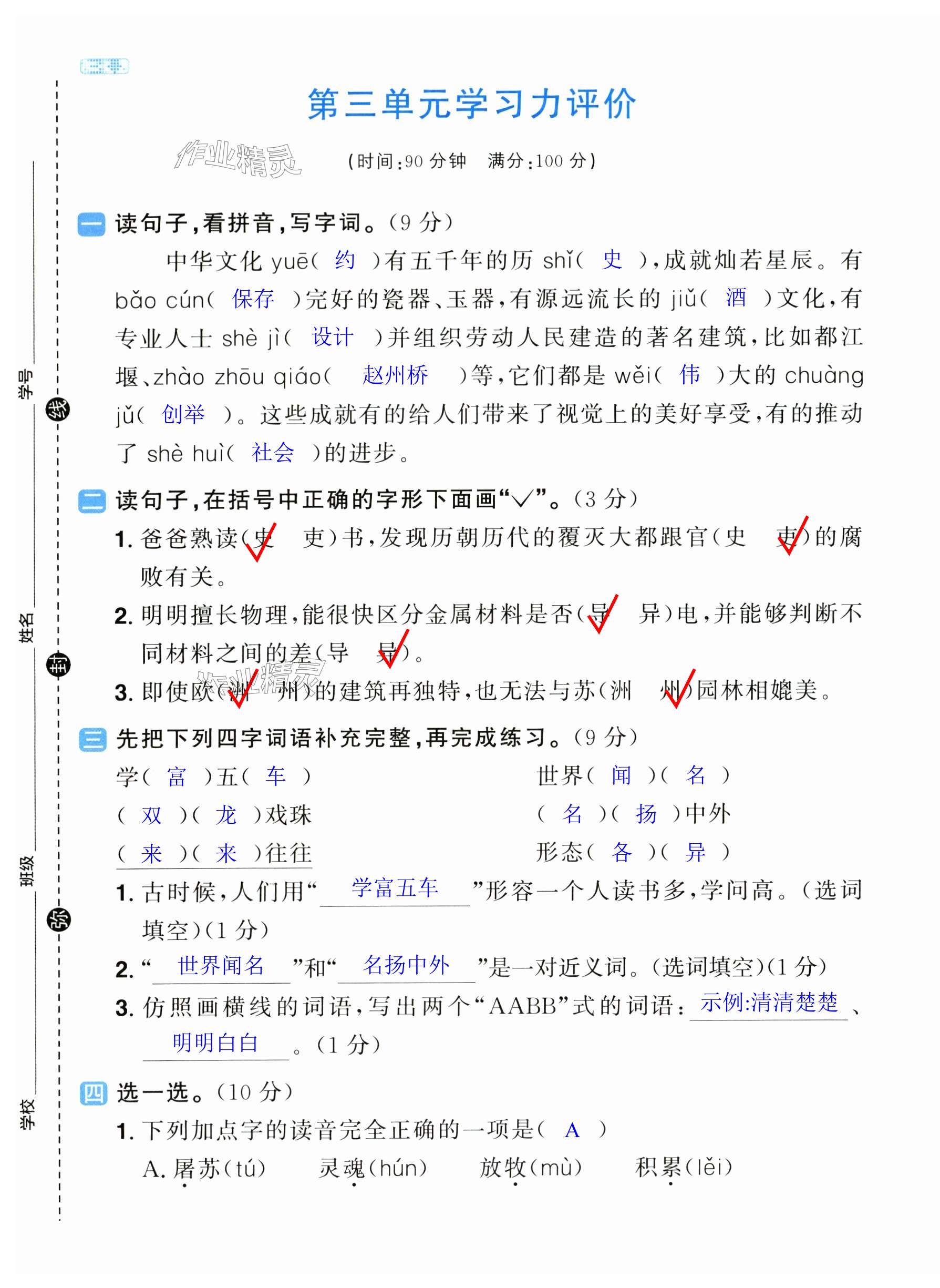 注:目前有些书本章节名称可能整理的还不是很完善,但都是按照顺序排列的,请同学们按照顺序仔细查找。练习册 2024年阳光同学课时优化作业三年级语文下册人教版 答案主要是用来给同学们做完题方便对答案用的,请勿直接抄袭。