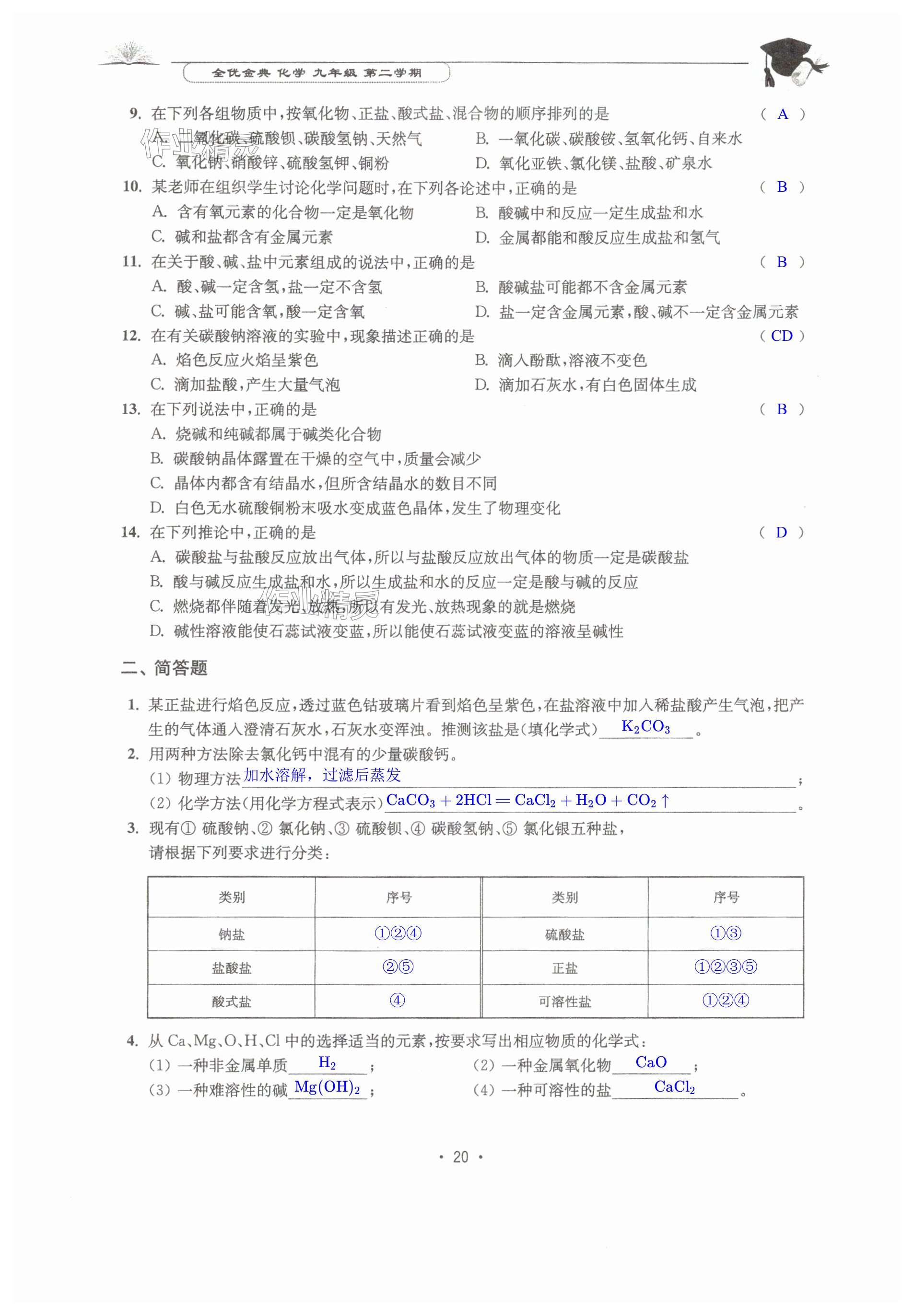 注:目前有些书本章节名称可能整理的还不是很完善,但都是按照顺序排列的,请同学们按照顺序仔细查找。练习册 2024年全优金典九年级化学下册沪教版54制 答案主要是用来给同学们做完题方便对答案用的,请勿直接抄袭。