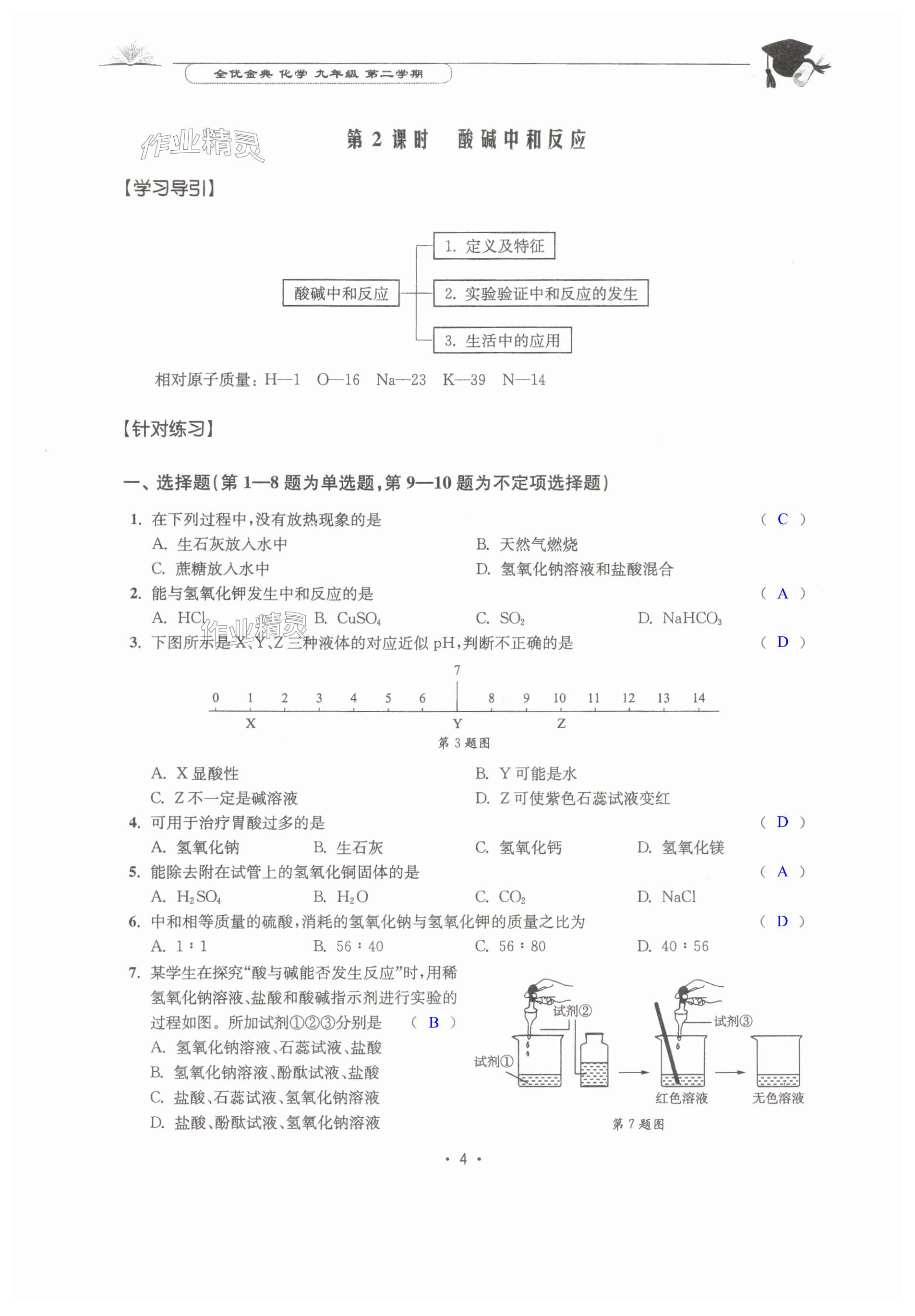 注:目前有些书本章节名称可能整理的还不是很完善,但都是按照顺序排列的,请同学们按照顺序仔细查找。练习册 2024年全优金典九年级化学下册沪教版54制 答案主要是用来给同学们做完题方便对答案用的,请勿直接抄袭。