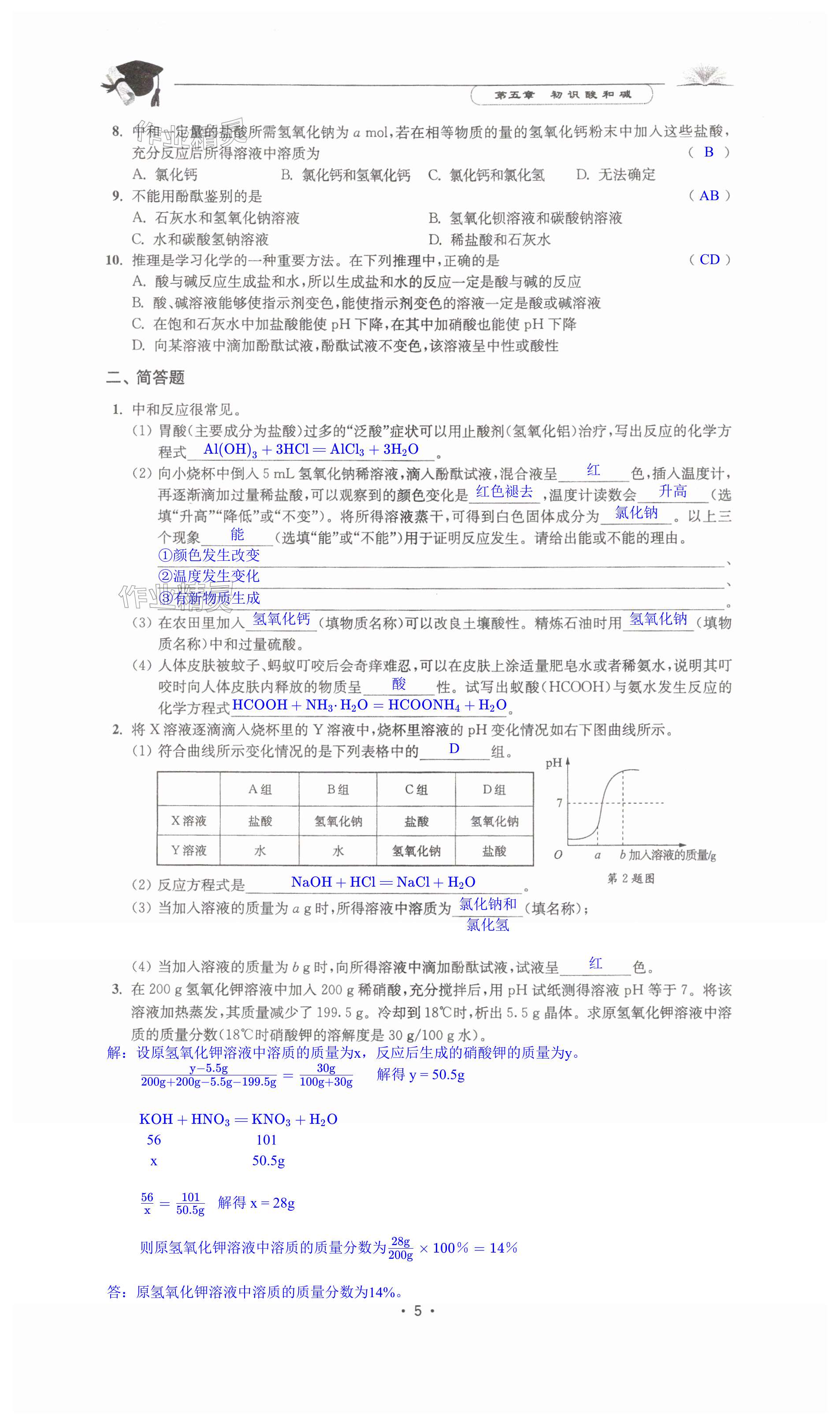 注:目前有些书本章节名称可能整理的还不是很完善,但都是按照顺序排列的,请同学们按照顺序仔细查找。练习册 2024年全优金典九年级化学下册沪教版54制 答案主要是用来给同学们做完题方便对答案用的,请勿直接抄袭。