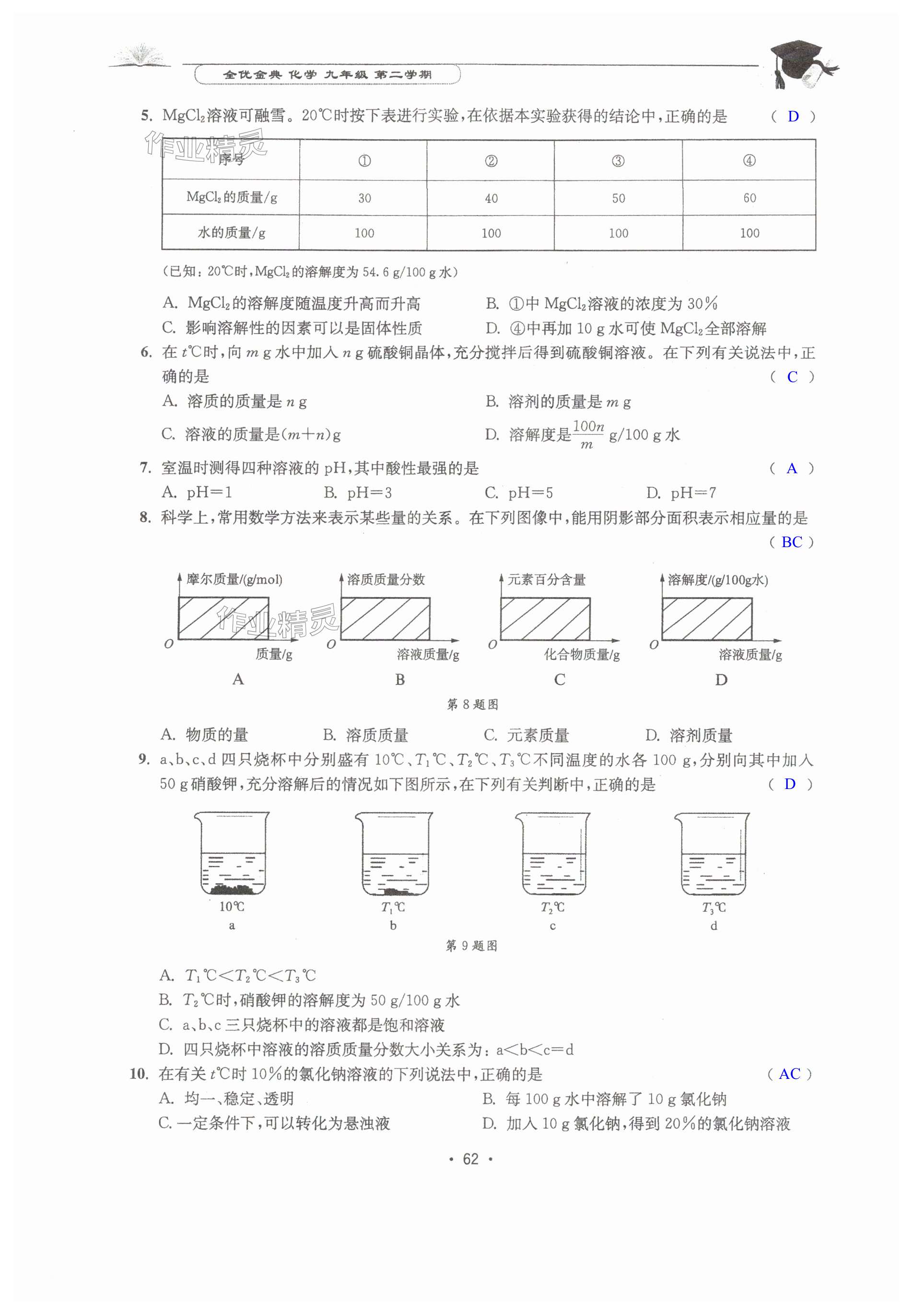 注:目前有些书本章节名称可能整理的还不是很完善,但都是按照顺序排列的,请同学们按照顺序仔细查找。练习册 2024年全优金典九年级化学下册沪教版54制 答案主要是用来给同学们做完题方便对答案用的,请勿直接抄袭。