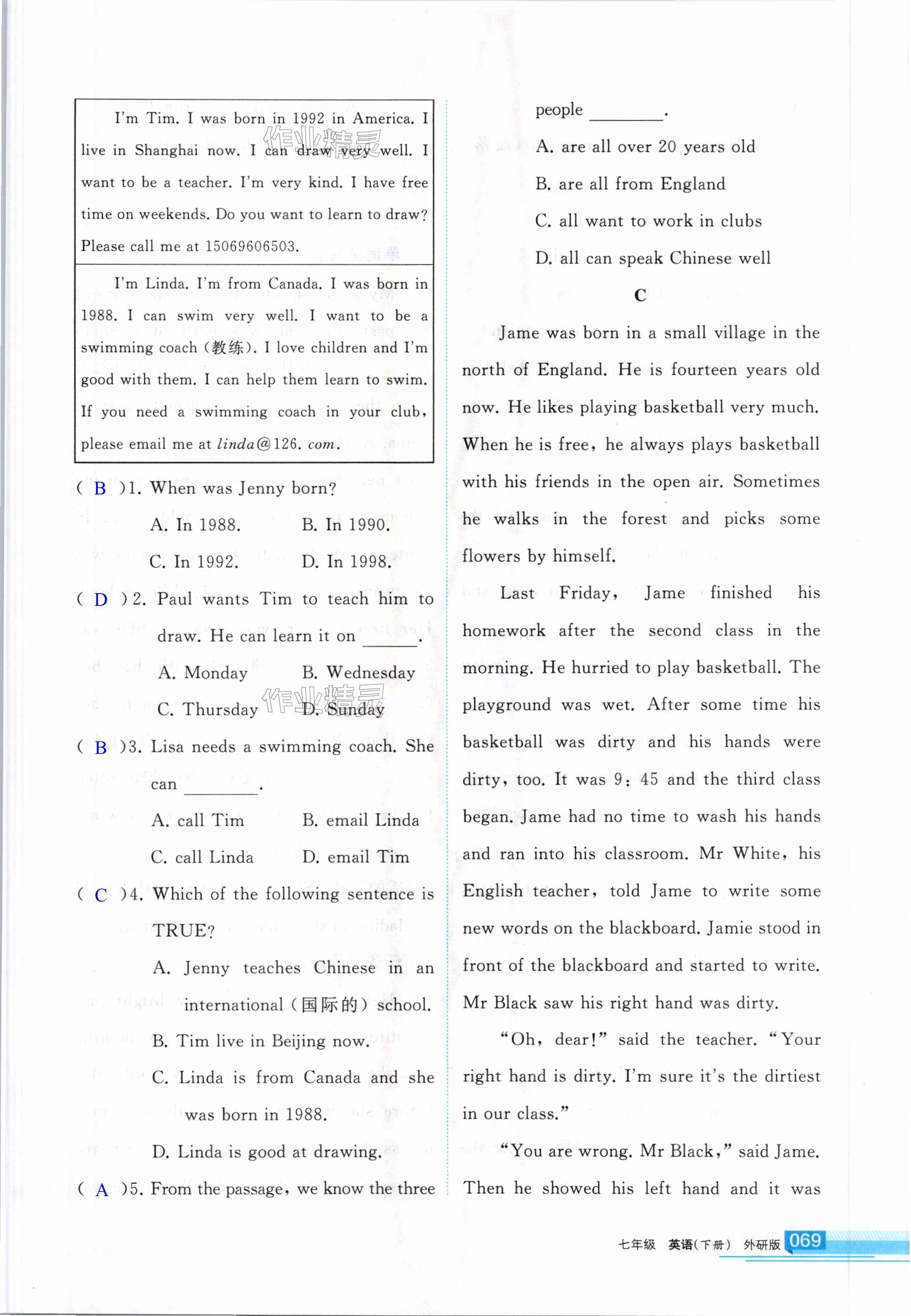 注:目前有些书本章节名称可能整理的还不是很完善,但都是按照顺序排列的,请同学们按照顺序仔细查找。练习册 2024年学习之友七年级英语下册外研版 答案主要是用来给同学们做完题方便对答案用的,请勿直接抄袭。