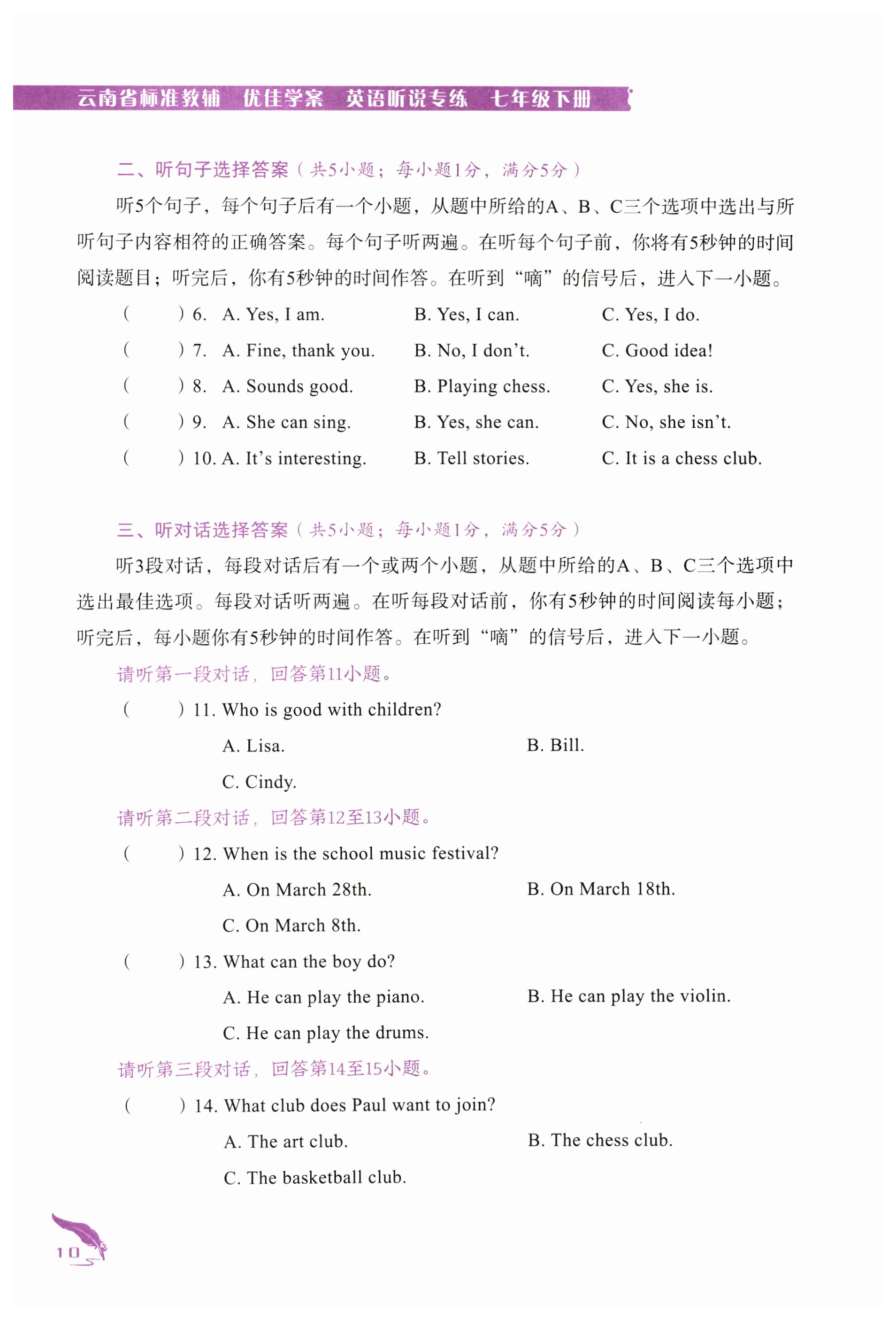 注:目前有些书本章节名称可能整理的还不是很完善,但都是按照顺序排列的,请同学们按照顺序仔细查找。练习册 2024年云南省标准教辅优佳学案七年级英语下册人教版 答案主要是用来给同学们做完题方便对答案用的,请勿直接抄袭。