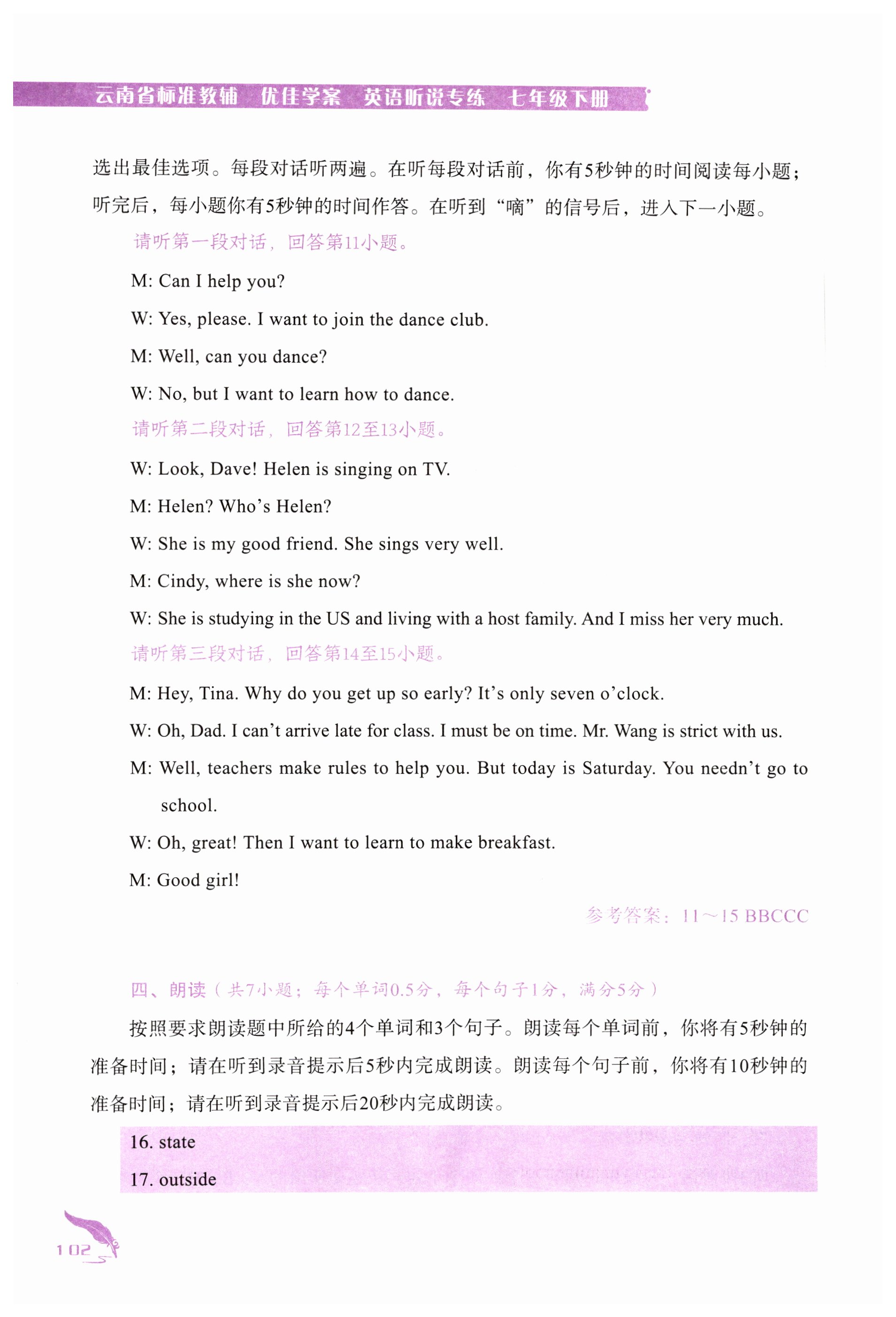 注:目前有些书本章节名称可能整理的还不是很完善,但都是按照顺序排列的,请同学们按照顺序仔细查找。练习册 2024年云南省标准教辅优佳学案七年级英语下册人教版 答案主要是用来给同学们做完题方便对答案用的,请勿直接抄袭。