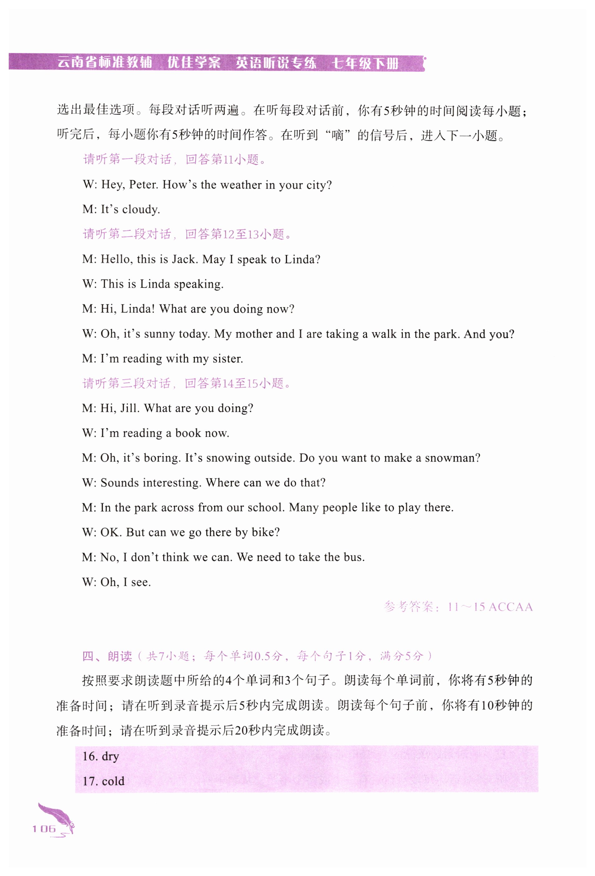 注:目前有些书本章节名称可能整理的还不是很完善,但都是按照顺序排列的,请同学们按照顺序仔细查找。练习册 2024年云南省标准教辅优佳学案七年级英语下册人教版 答案主要是用来给同学们做完题方便对答案用的,请勿直接抄袭。