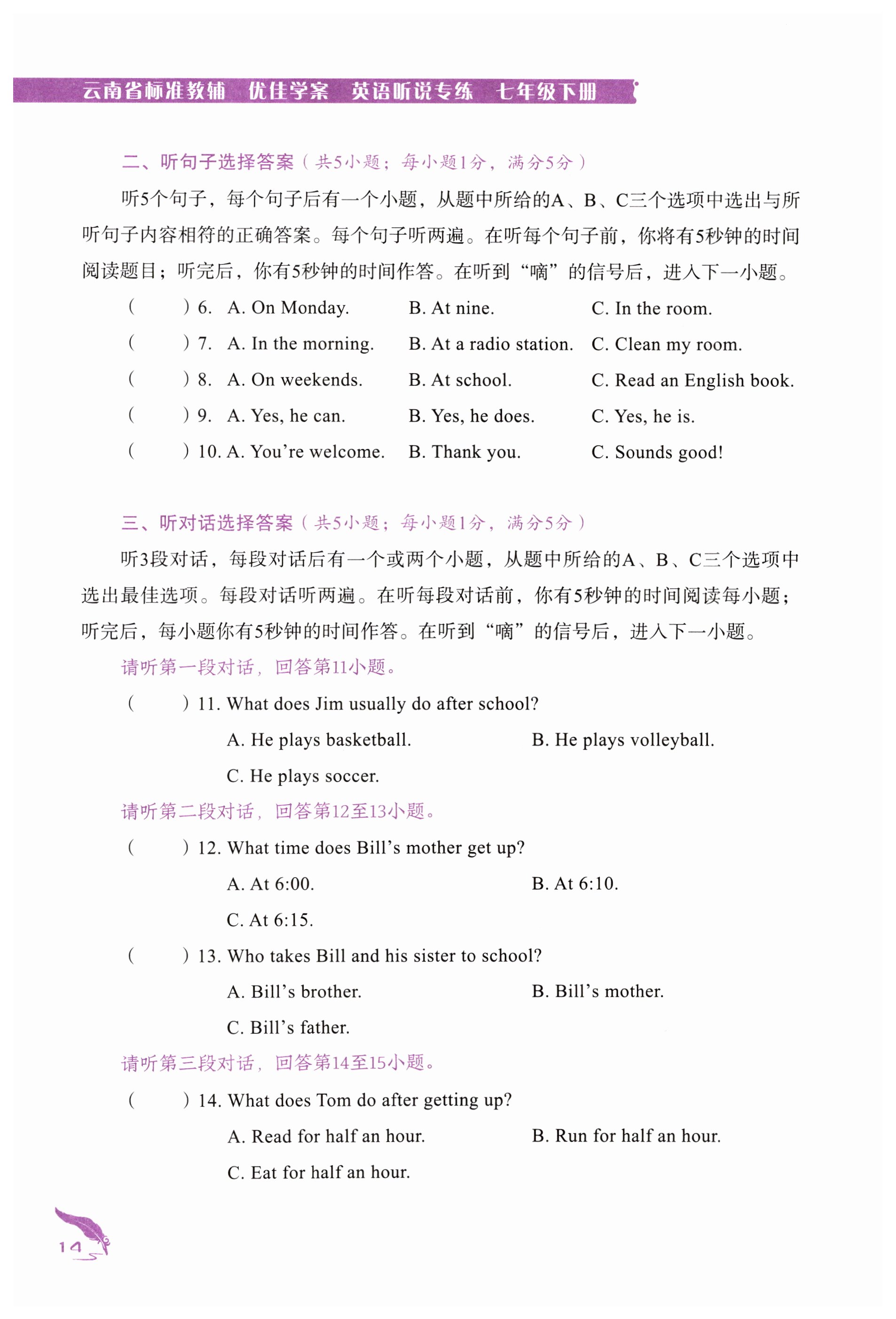 注:目前有些书本章节名称可能整理的还不是很完善,但都是按照顺序排列的,请同学们按照顺序仔细查找。练习册 2024年云南省标准教辅优佳学案七年级英语下册人教版 答案主要是用来给同学们做完题方便对答案用的,请勿直接抄袭。