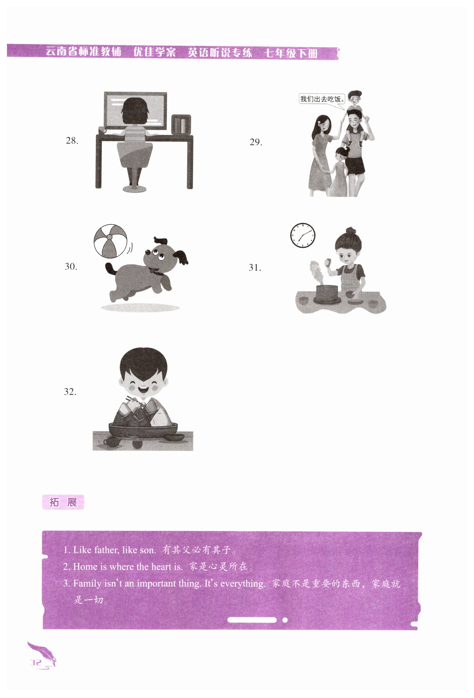 注:目前有些书本章节名称可能整理的还不是很完善,但都是按照顺序排列的,请同学们按照顺序仔细查找。练习册 2024年云南省标准教辅优佳学案七年级英语下册人教版 答案主要是用来给同学们做完题方便对答案用的,请勿直接抄袭。