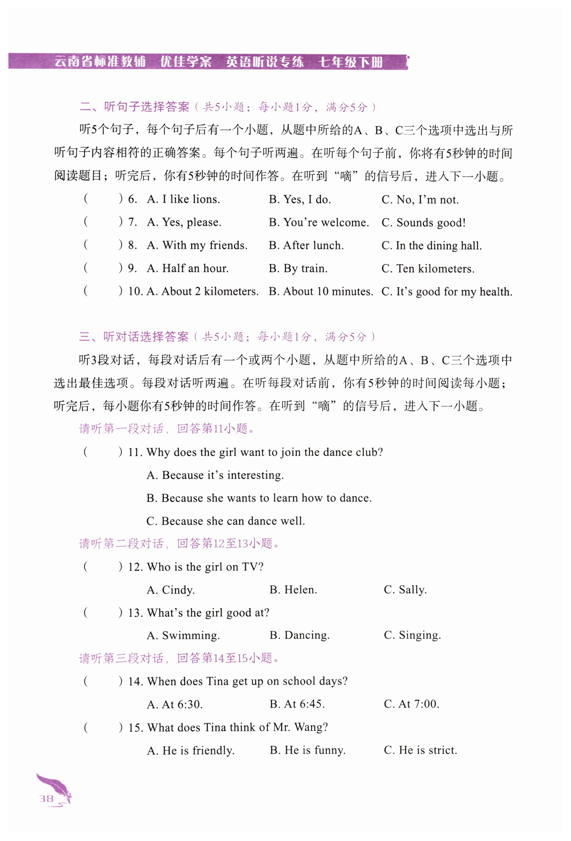 注:目前有些书本章节名称可能整理的还不是很完善,但都是按照顺序排列的,请同学们按照顺序仔细查找。练习册 2024年云南省标准教辅优佳学案七年级英语下册人教版 答案主要是用来给同学们做完题方便对答案用的,请勿直接抄袭。