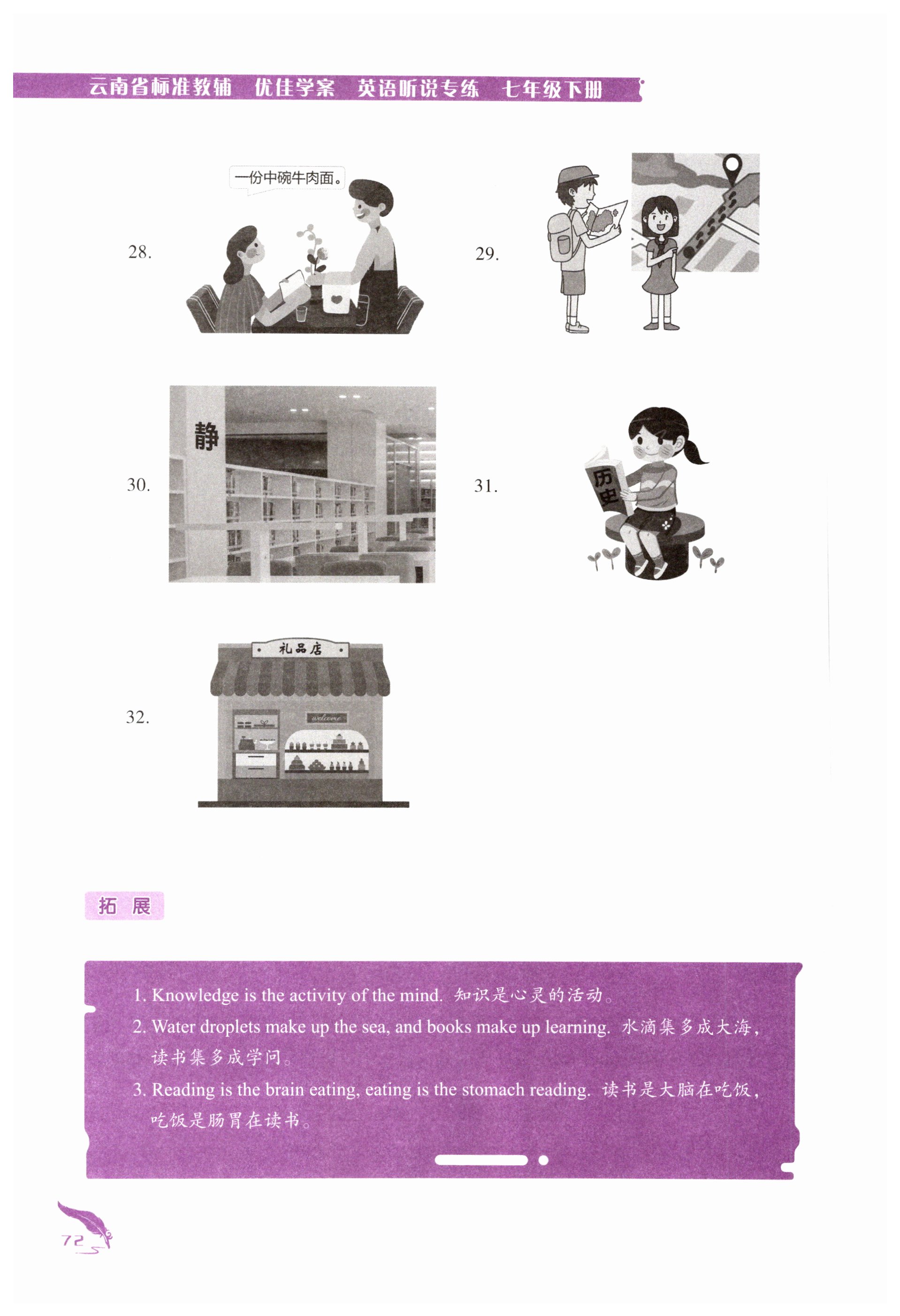 注:目前有些书本章节名称可能整理的还不是很完善,但都是按照顺序排列的,请同学们按照顺序仔细查找。练习册 2024年云南省标准教辅优佳学案七年级英语下册人教版 答案主要是用来给同学们做完题方便对答案用的,请勿直接抄袭。