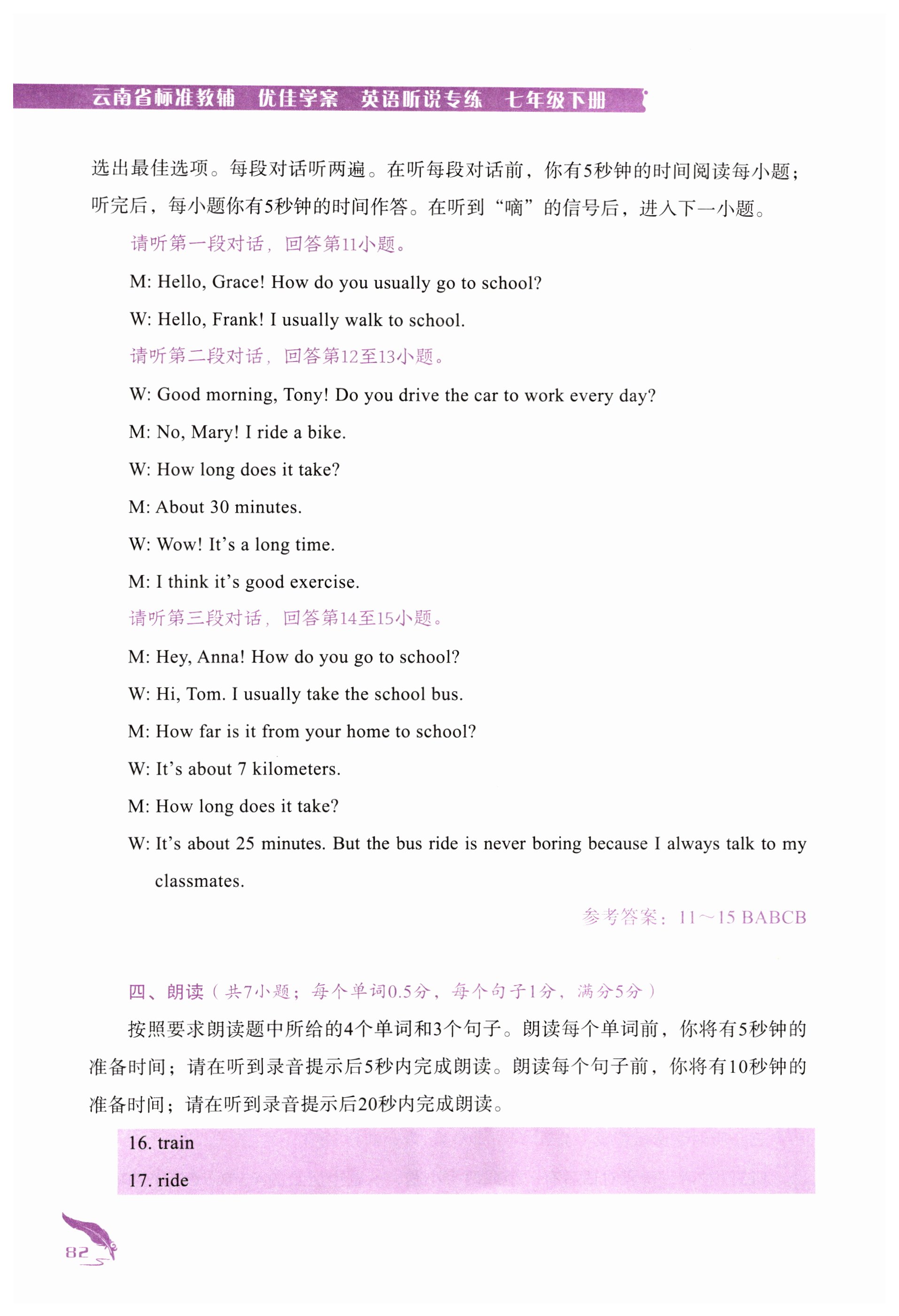 2024年云南省标准教辅优佳学案七年级英语下册人教版