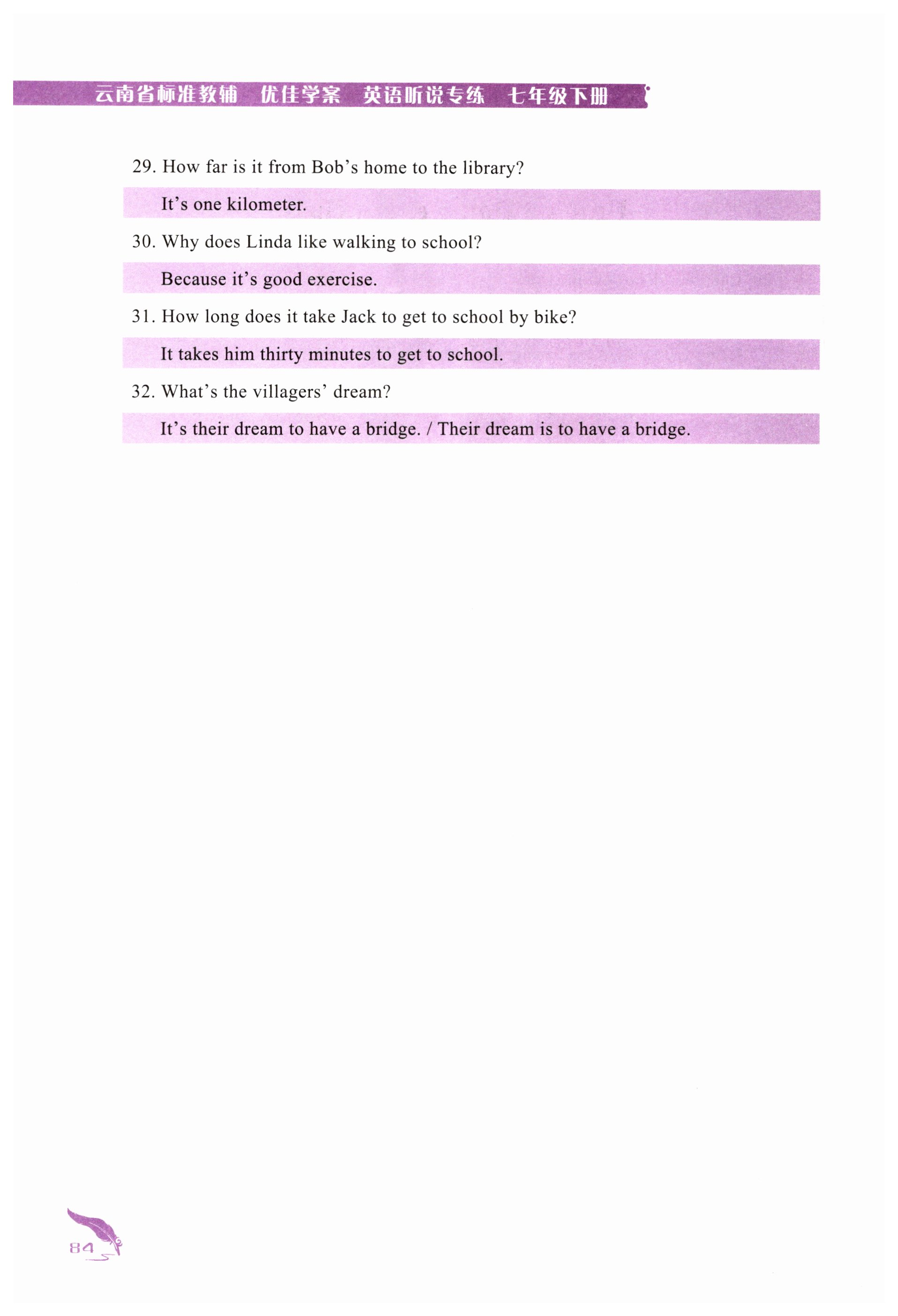 注:目前有些书本章节名称可能整理的还不是很完善,但都是按照顺序排列的,请同学们按照顺序仔细查找。练习册 2024年云南省标准教辅优佳学案七年级英语下册人教版 答案主要是用来给同学们做完题方便对答案用的,请勿直接抄袭。
