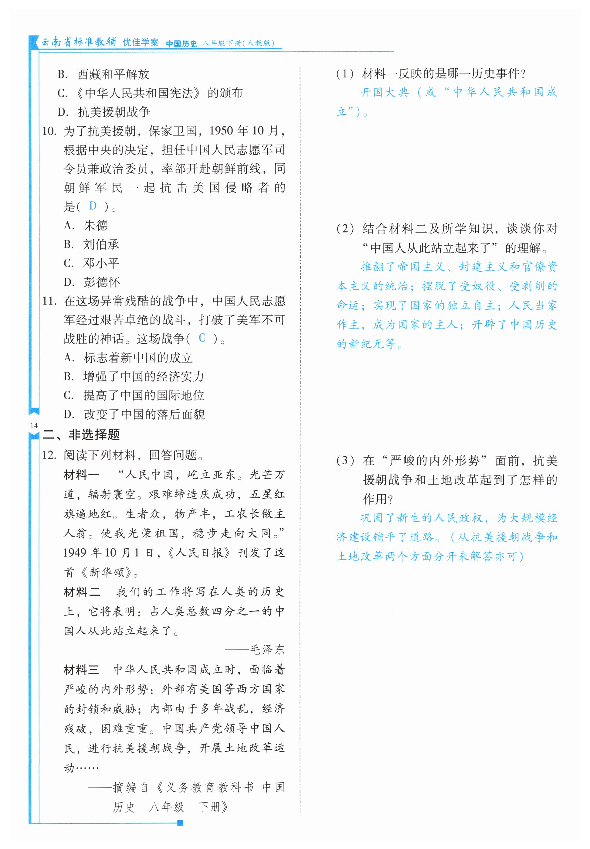 注:目前有些书本章节名称可能整理的还不是很完善,但都是按照顺序排列的,请同学们按照顺序仔细查找。练习册 2024年云南省标准教辅优佳学案八年级历史下册人教版 答案主要是用来给同学们做完题方便对答案用的,请勿直接抄袭。