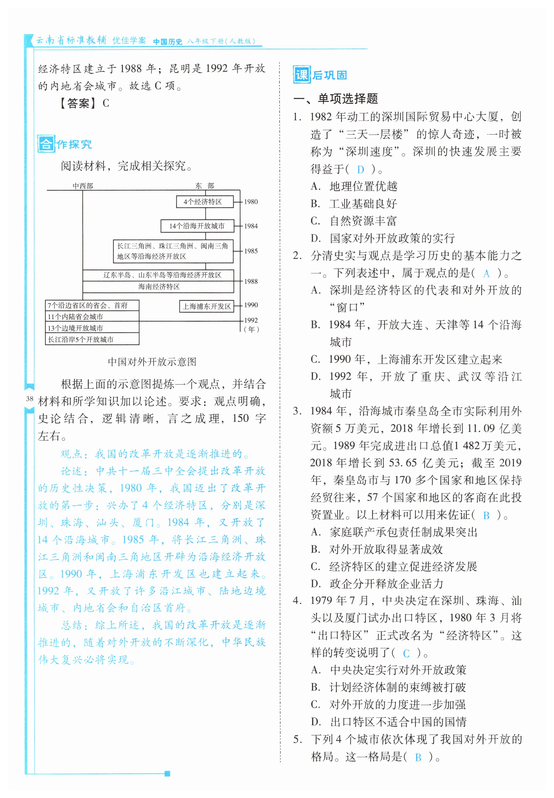 注:目前有些书本章节名称可能整理的还不是很完善,但都是按照顺序排列的,请同学们按照顺序仔细查找。练习册 2024年云南省标准教辅优佳学案八年级历史下册人教版 答案主要是用来给同学们做完题方便对答案用的,请勿直接抄袭。