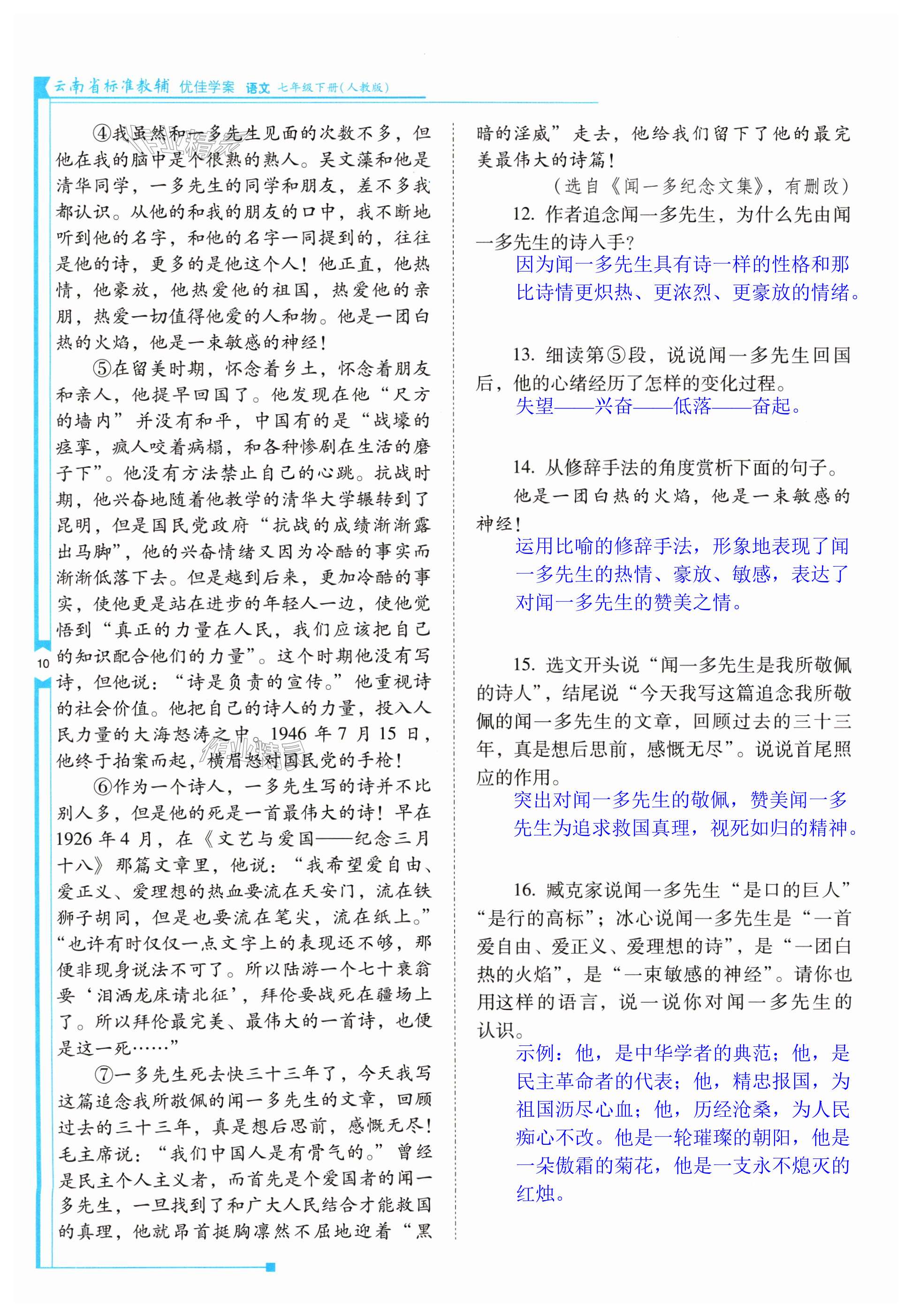 注:目前有些书本章节名称可能整理的还不是很完善,但都是按照顺序排列的,请同学们按照顺序仔细查找。练习册 2024年云南省标准教辅优佳学案七年级语文下册人教版 答案主要是用来给同学们做完题方便对答案用的,请勿直接抄袭。