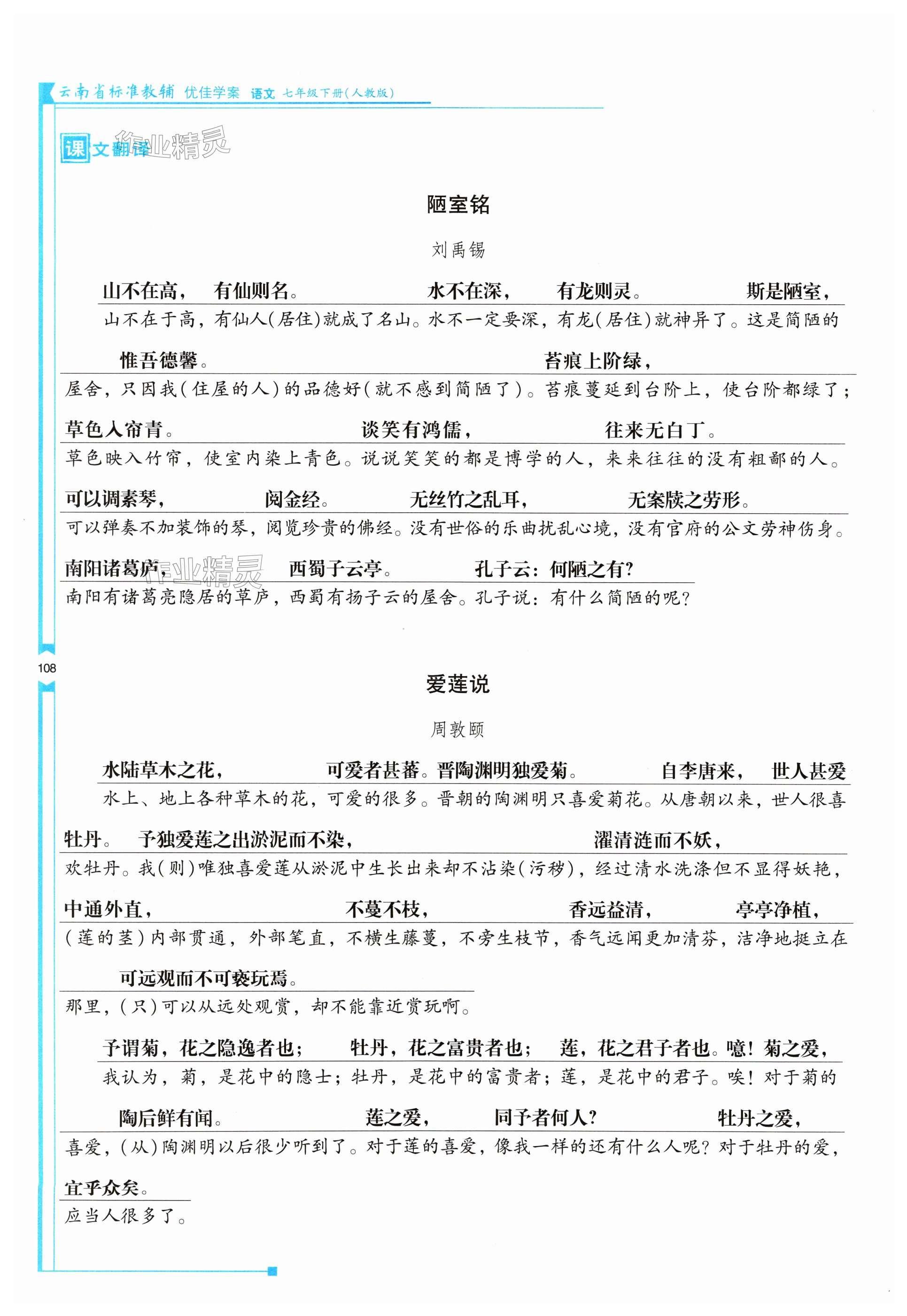 2024年云南省标准教辅优佳学案七年级语文下册人教版