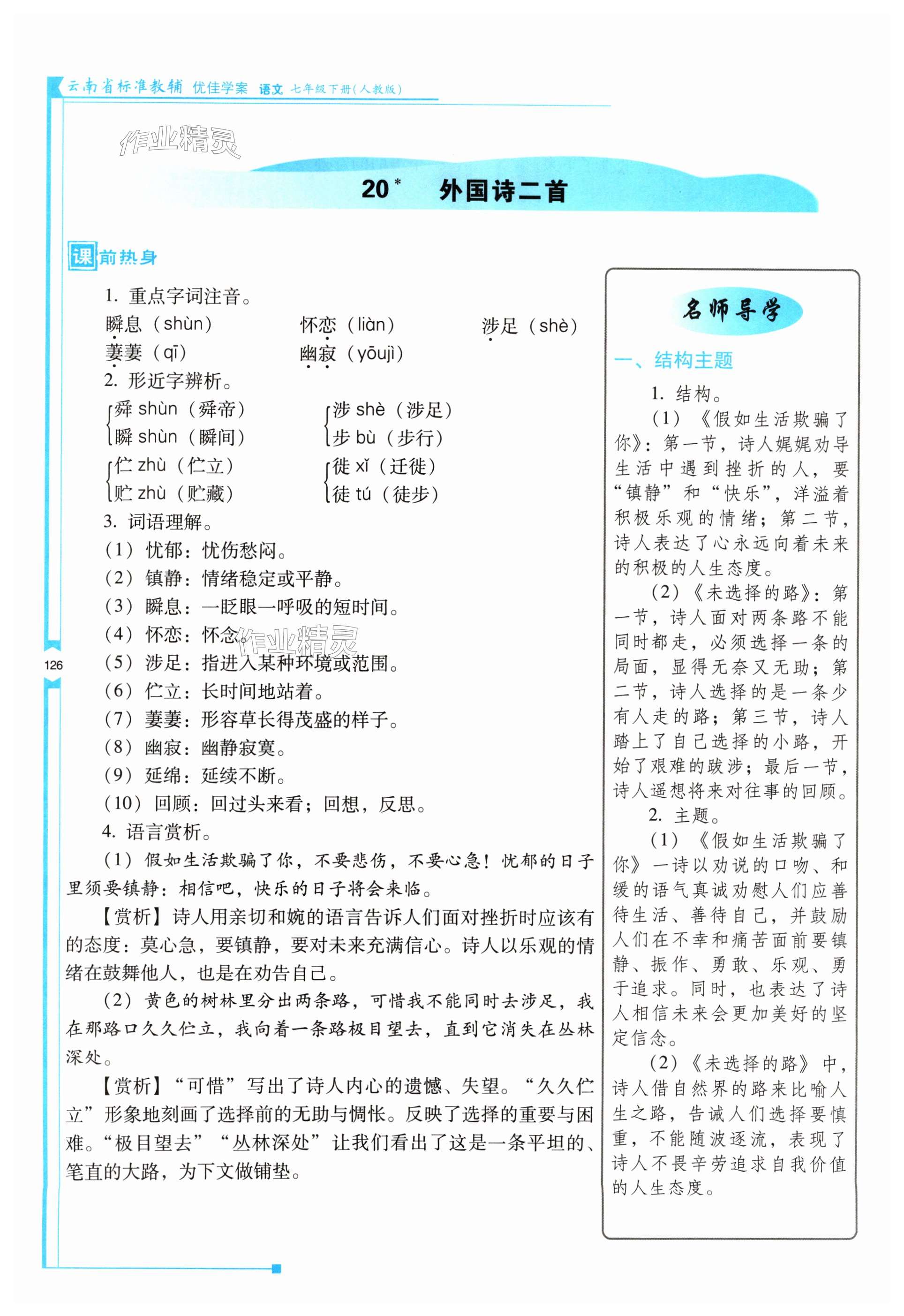 2024年云南省标准教辅优佳学案七年级语文下册人教版