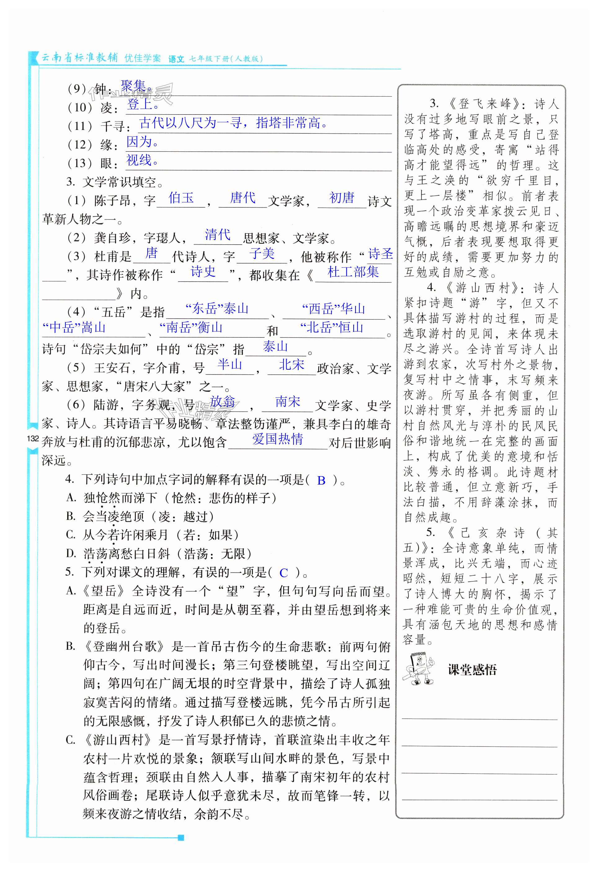 注:目前有些书本章节名称可能整理的还不是很完善,但都是按照顺序排列的,请同学们按照顺序仔细查找。练习册 2024年云南省标准教辅优佳学案七年级语文下册人教版 答案主要是用来给同学们做完题方便对答案用的,请勿直接抄袭。