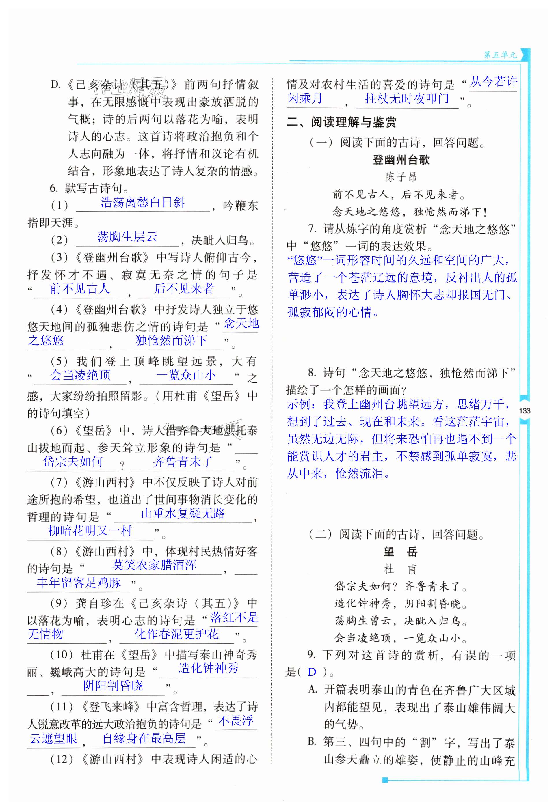 注:目前有些书本章节名称可能整理的还不是很完善,但都是按照顺序排列的,请同学们按照顺序仔细查找。练习册 2024年云南省标准教辅优佳学案七年级语文下册人教版 答案主要是用来给同学们做完题方便对答案用的,请勿直接抄袭。