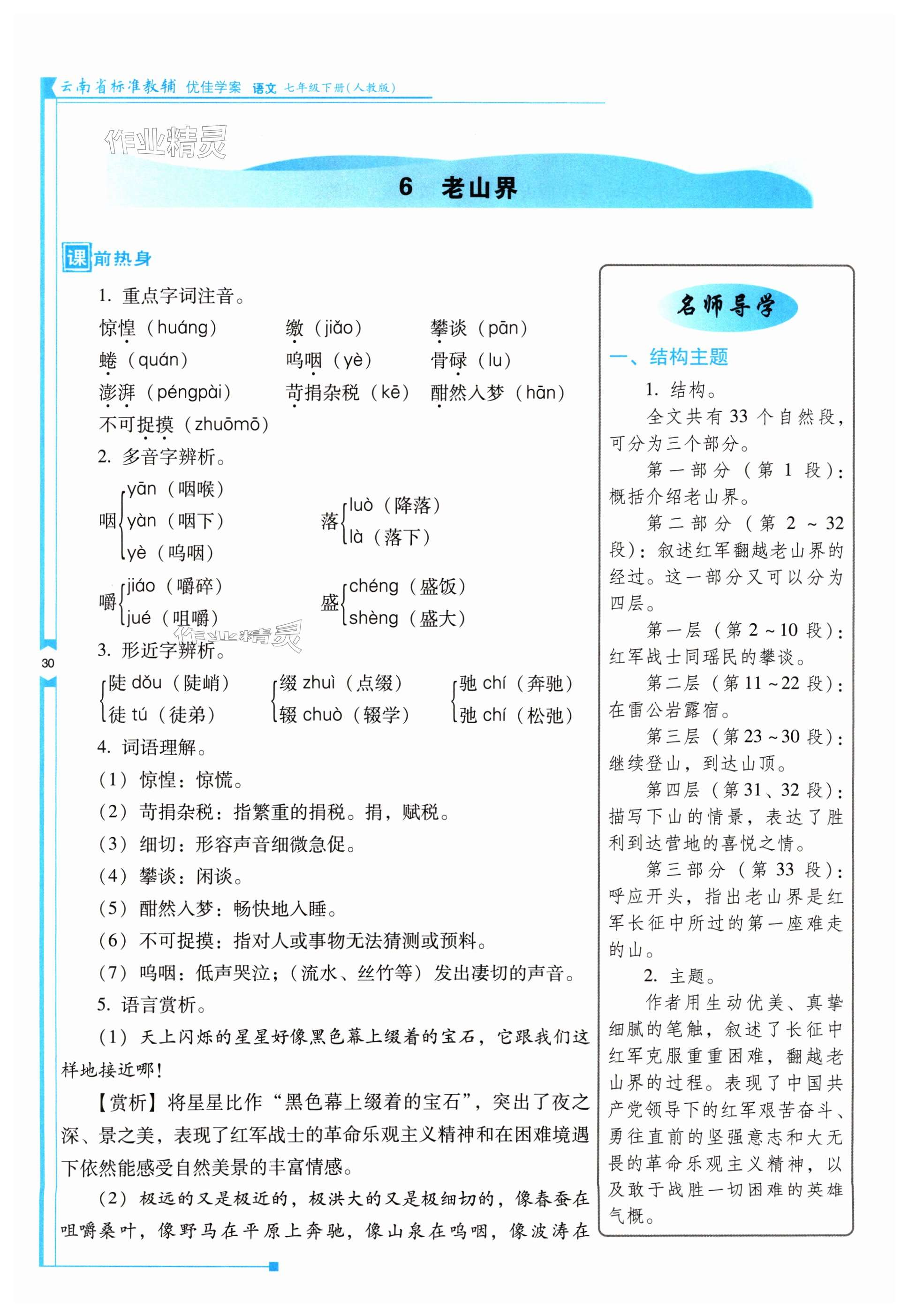 注:目前有些书本章节名称可能整理的还不是很完善,但都是按照顺序排列的,请同学们按照顺序仔细查找。练习册 2024年云南省标准教辅优佳学案七年级语文下册人教版 答案主要是用来给同学们做完题方便对答案用的,请勿直接抄袭。