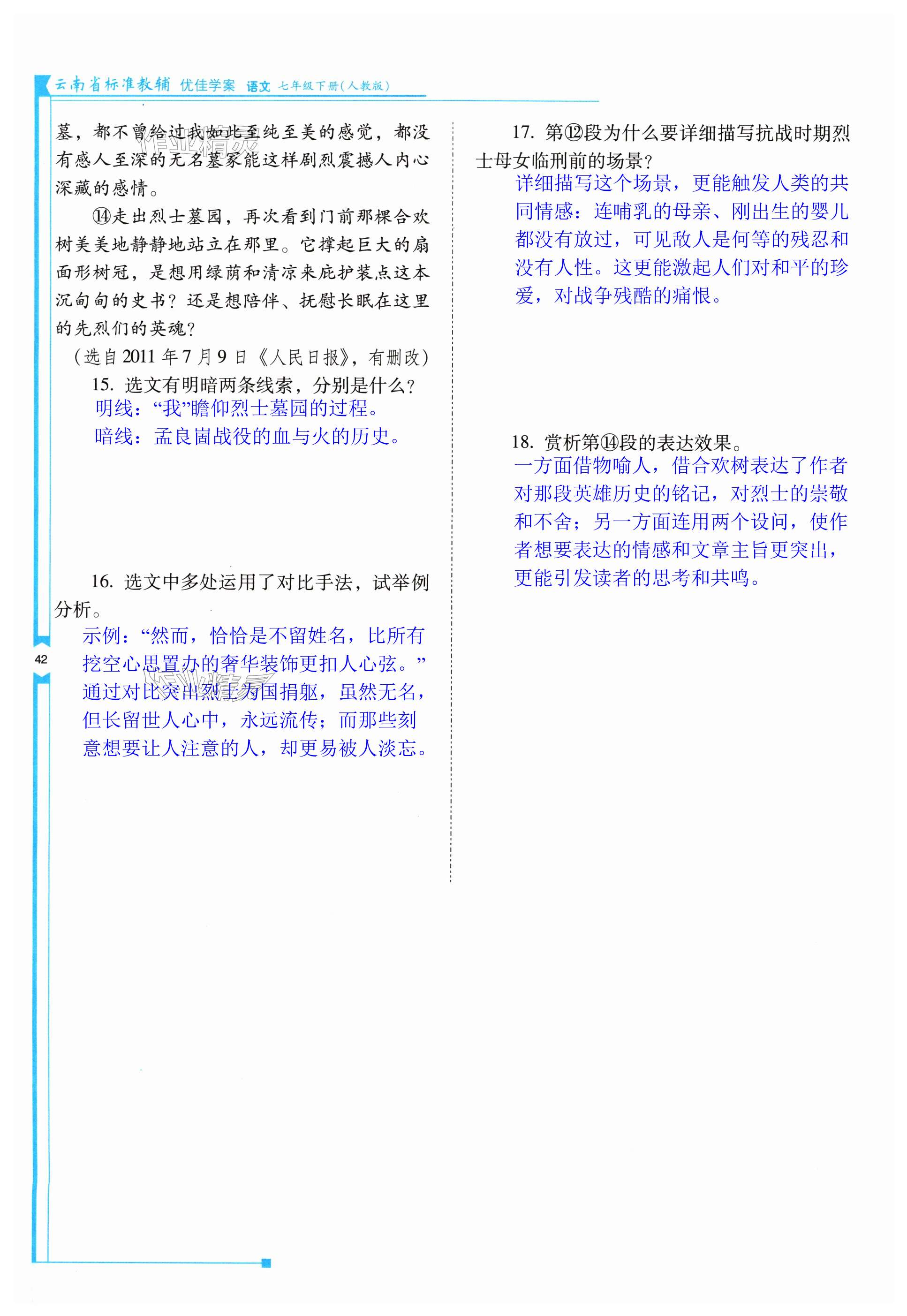 注:目前有些书本章节名称可能整理的还不是很完善,但都是按照顺序排列的,请同学们按照顺序仔细查找。练习册 2024年云南省标准教辅优佳学案七年级语文下册人教版 答案主要是用来给同学们做完题方便对答案用的,请勿直接抄袭。