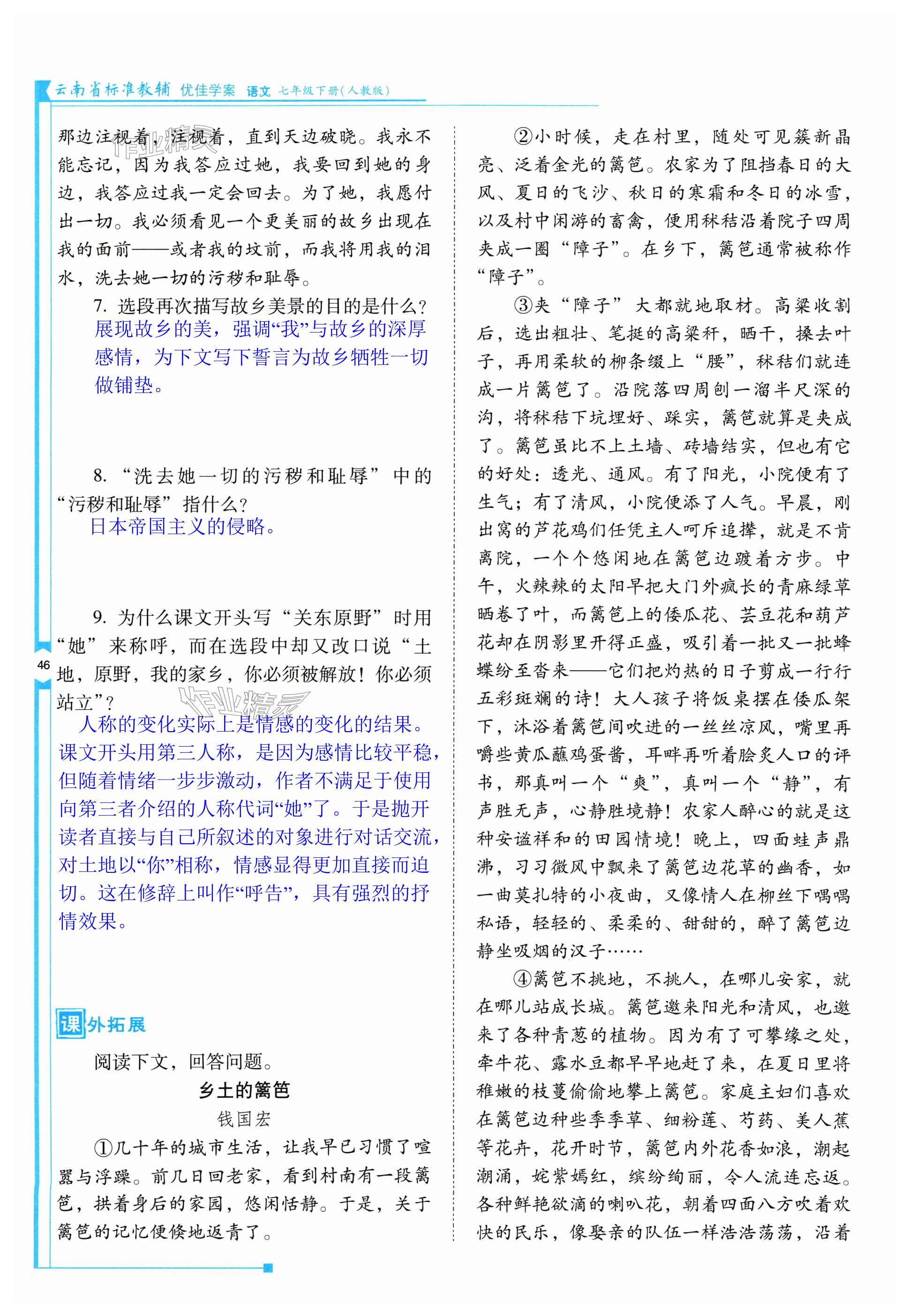 2024年云南省标准教辅优佳学案七年级语文下册人教版